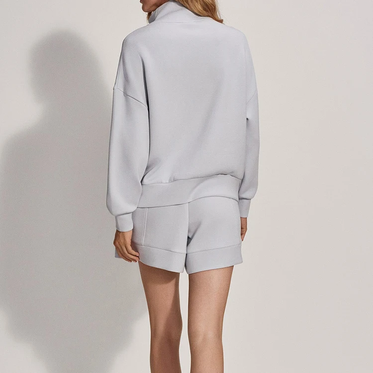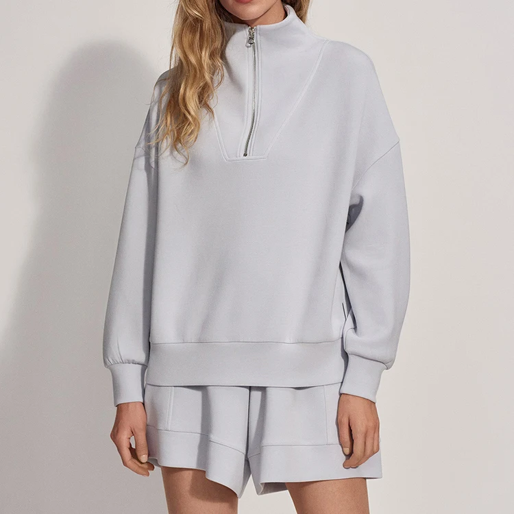 Custom High Quality Cotton Women's Hoodies Half Zip Sweatshirts With Mock Neck for Autumn Winter