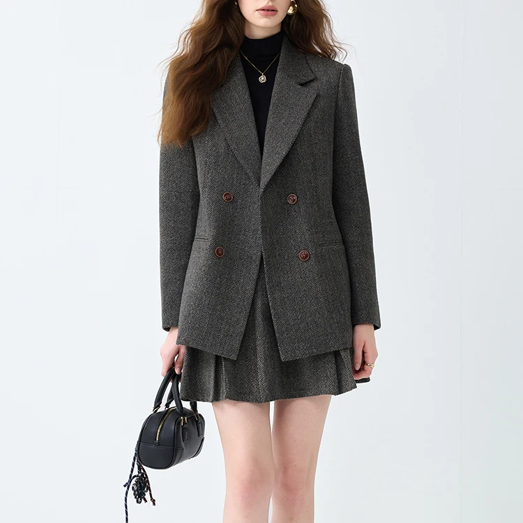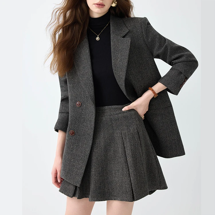Custom High Quality Women's Business Suits Office Formal Breathable V-neck Velour Jacket & Skirt Two-Piece Ensemble