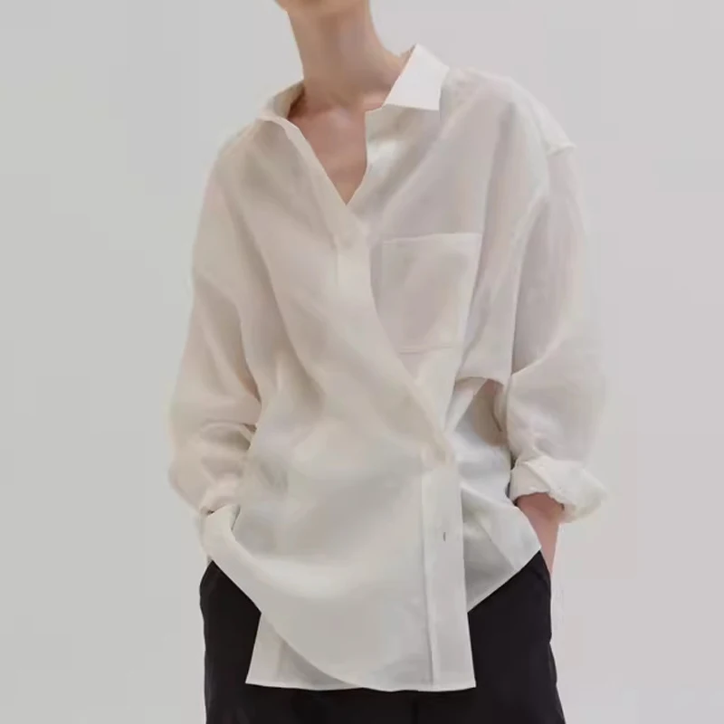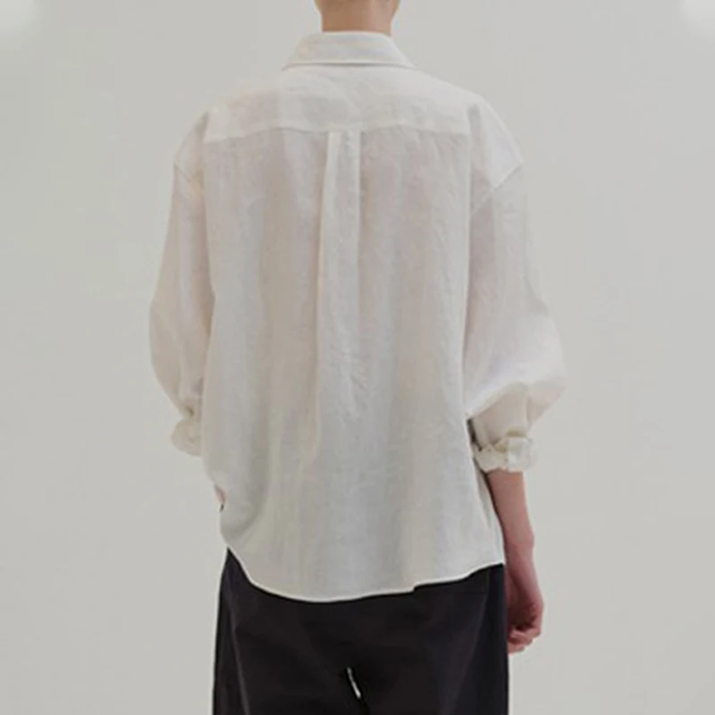 Custom High Quality Linen Long Sleeve Shirt Turn-down Collar Women's Blouses Shirts Casual Anti-Wrinkle Breathable