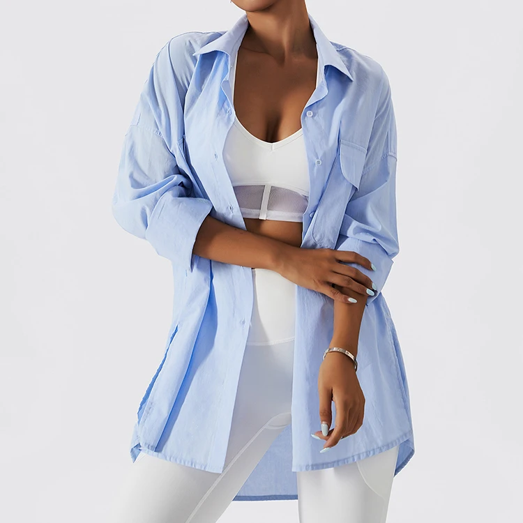 Custom High Quality Casual Outdoor Drop Shoulder Breathable All Seasons Oversize Long Sleeves Women's Blouses