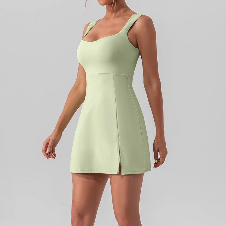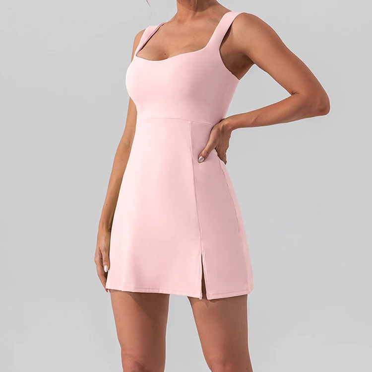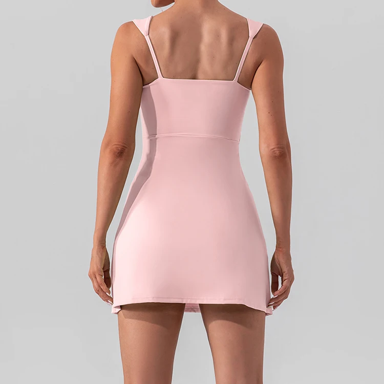 Custom High Quality Quick-Drying Short Golf Sportswear Women Hollow-out Back Tennis Skirt Set With Removable Chest Pad