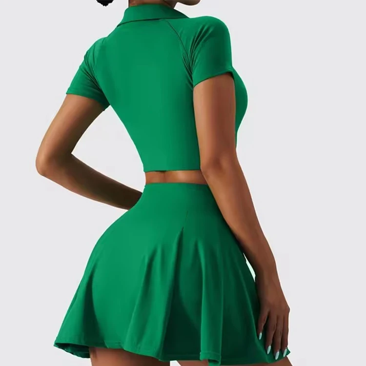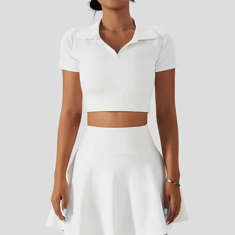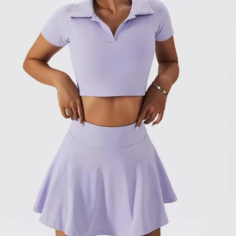 Custom High Quality Nude Feeling Tennis Clothes Set Female Athletic Tshirts 2 Piece Outfits Tennis Golf Skorts Skirt Sets