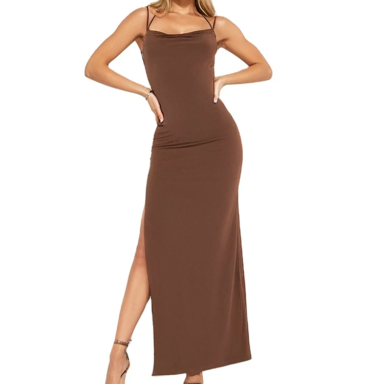Custom High Quality Collarless Solid Maxi Women's Elegant Casual Breathable Dress for Spring/Summer