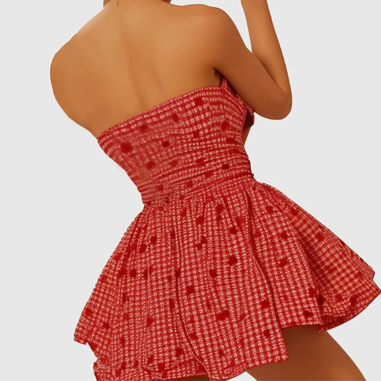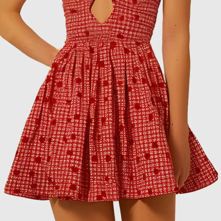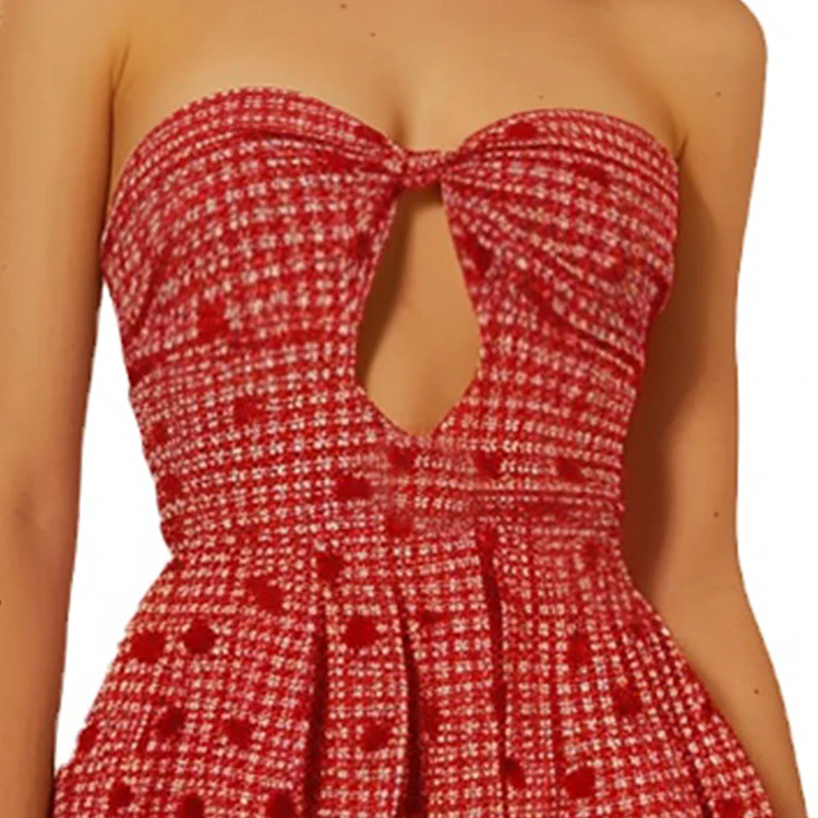 Custom High Quality Spring Summer Sleeveless off Shoulder Cut Out Flower Printed Sexy Pleated Mini Casual Dress