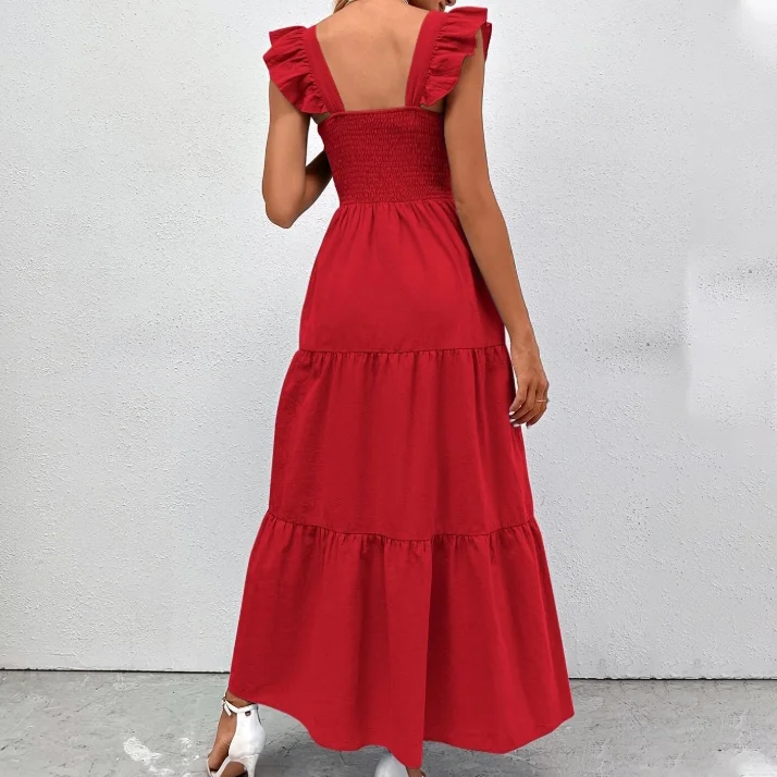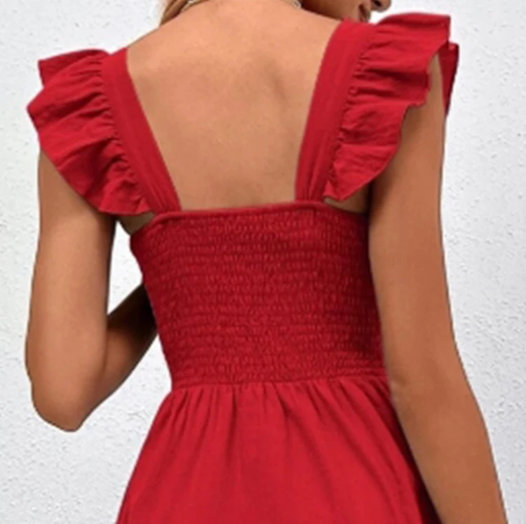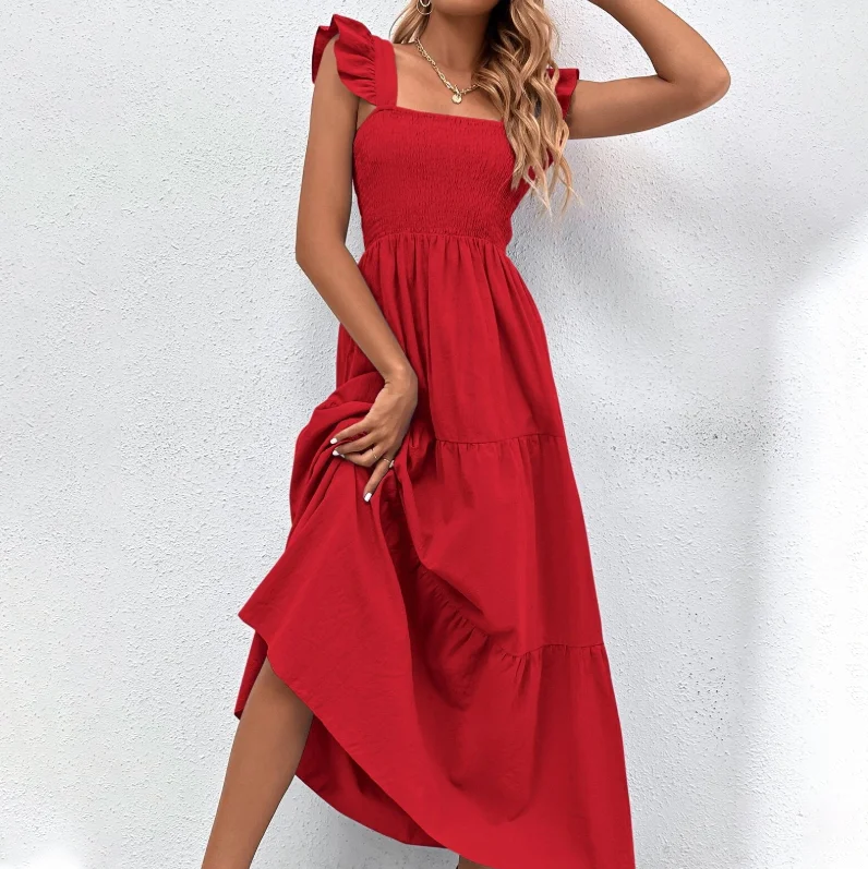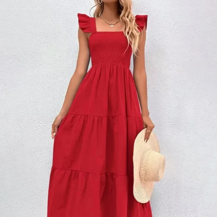 Custom High Quality Manufacturing Fashion Maxi Summer Vestido Casual Elegant Cotton Red Ladies Dress