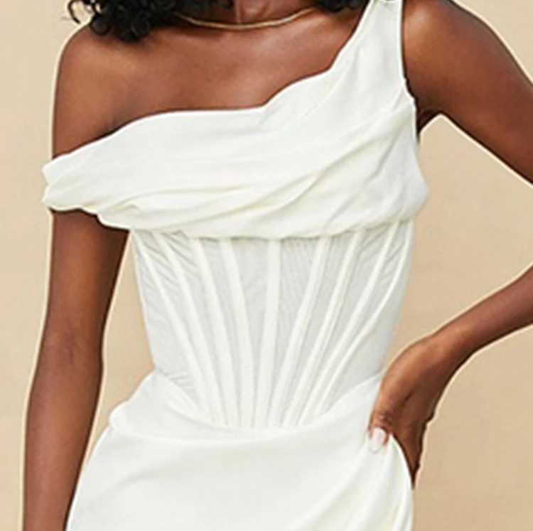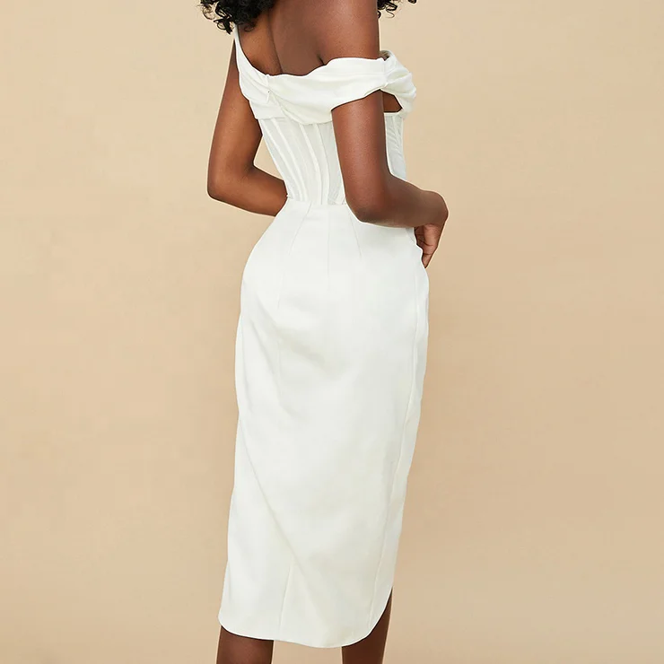 Custom High Quality Ivory Sexy Spring Summer Casual Natural Waist Bodycon Midi Strapless Pleated Dress