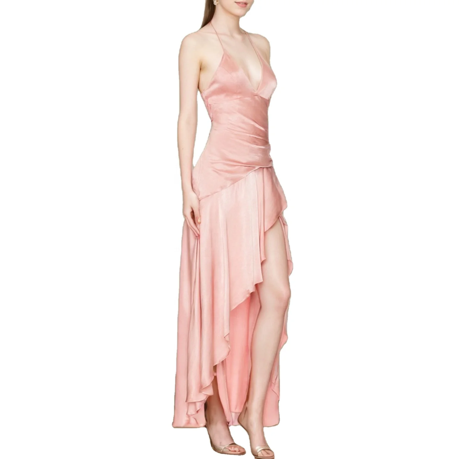Custom High Quality Spring Summer Luxury Silk Halter Evening Women's Dress for Weddings Special Occasions