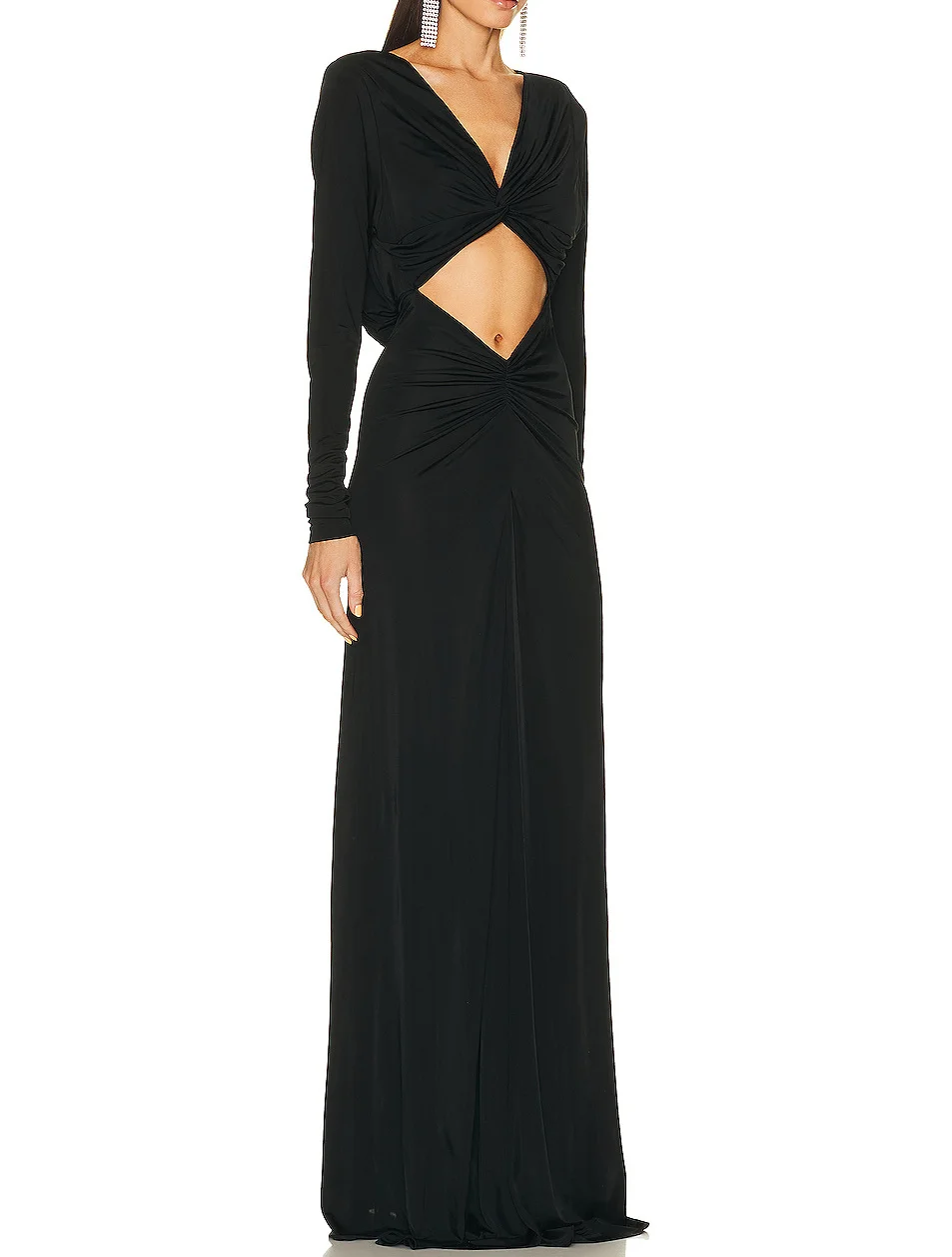 ZYHT 73907 Custom Design Long Sleeve High Neck Fashion Pleated Crystal Beads Ruched Knot High Slit Sexy Luxury Evening Dress
