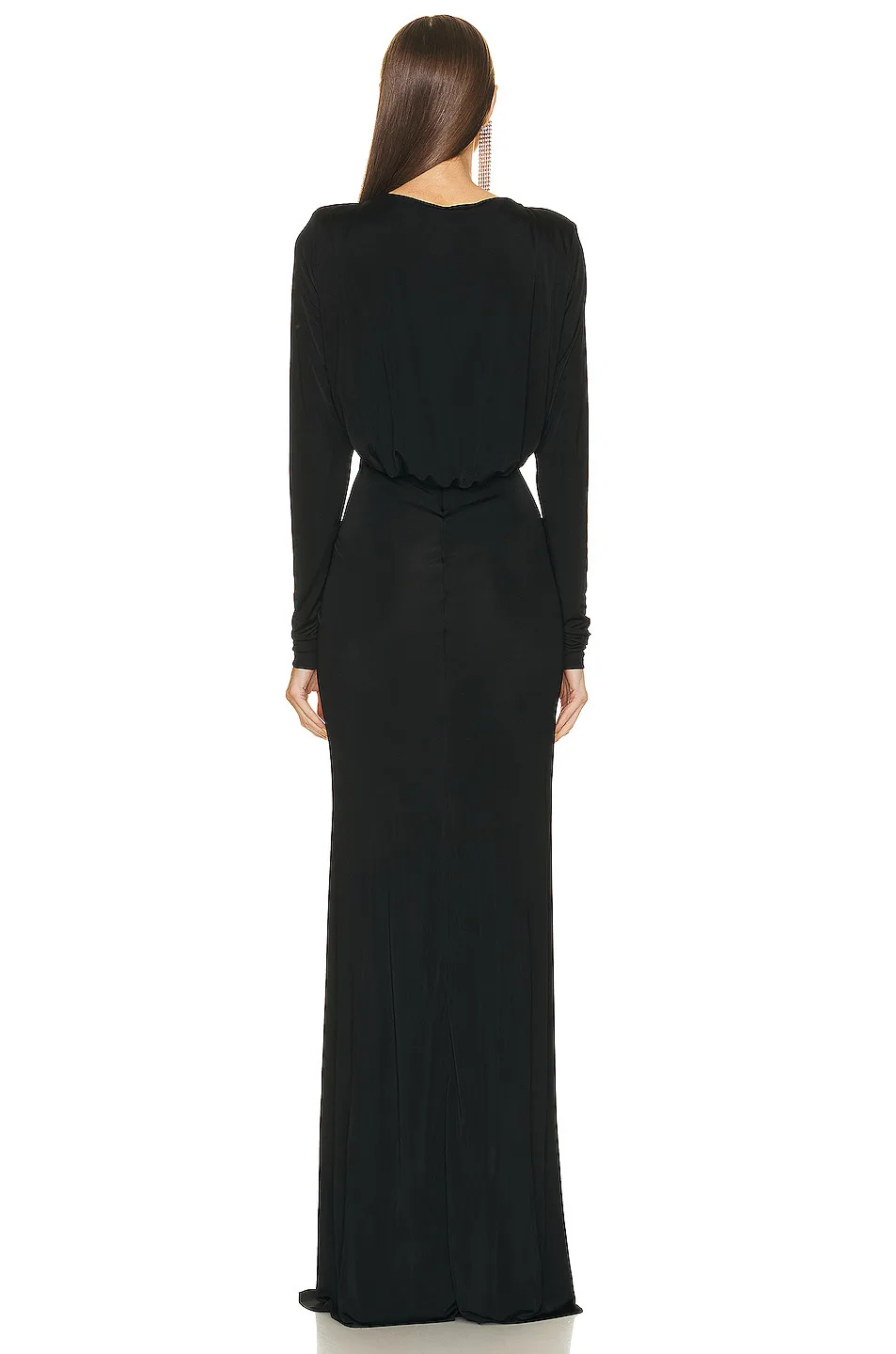 ZYHT 73905 Dusty Rose Off-The-Shoulder Long Sleeve Stretch Jersey Dress Ruched Bodice Floor Length Fish Tail Maxi Dress