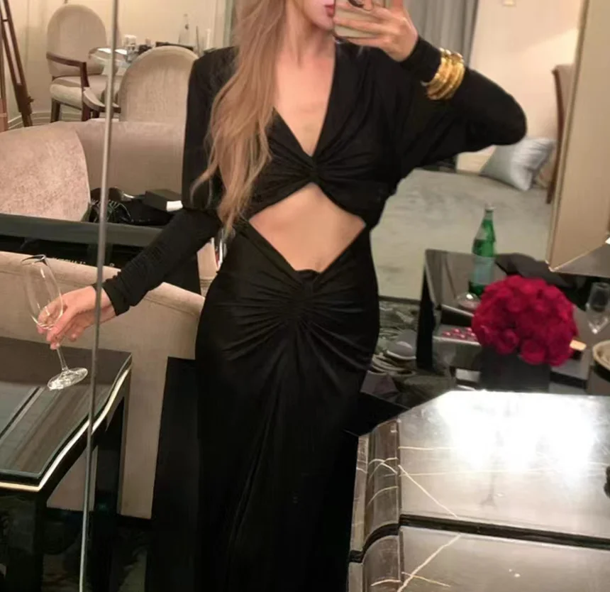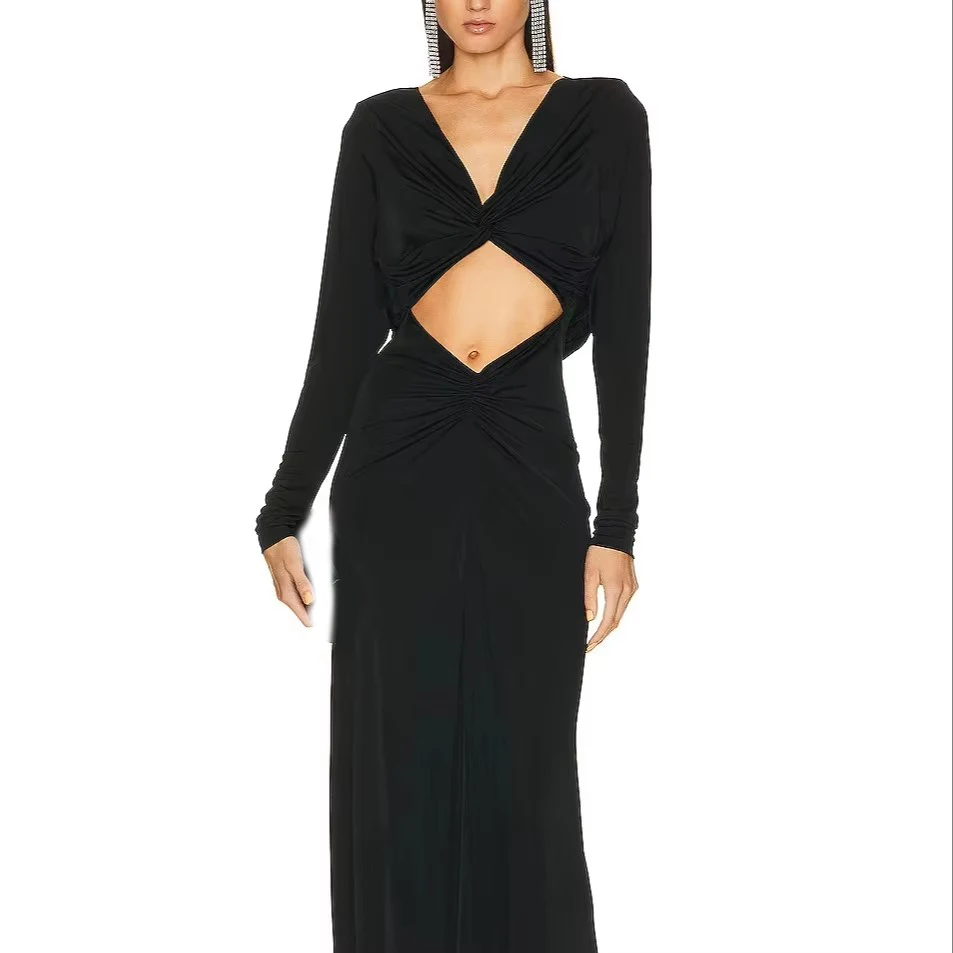 Custom High Quality Maxi Hollow Out Twisted Navel-baring Sexy Office Lady Daily Solid Summer Elegant Dress