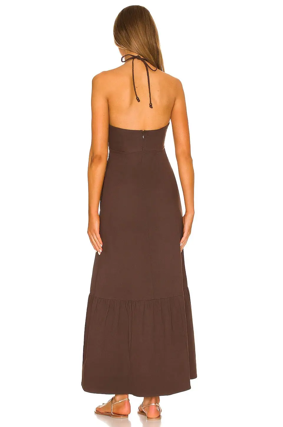 Custom High Quality Summer Office Lady Casual Dresses Spaghetti Strap Halter Neck a Line Sun Maxi Dress