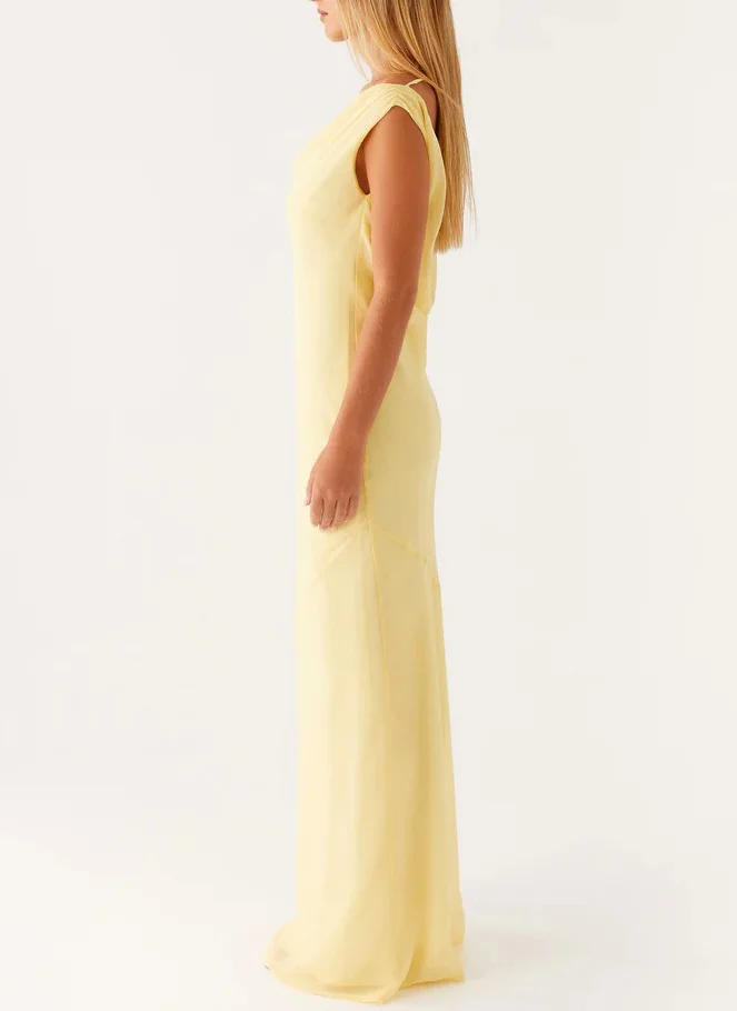 Custom High Quality Elegant Backless Maxi Shoulder Cowl Neck Sexy Fashion Spring Summer Plain Dyed Natural Waist Ladies Clothes