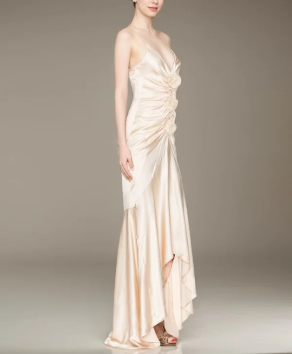 Luxury Satin Maxi Evening Gown for Women with Floral Design Spring Sexy Casual Elegant Wear