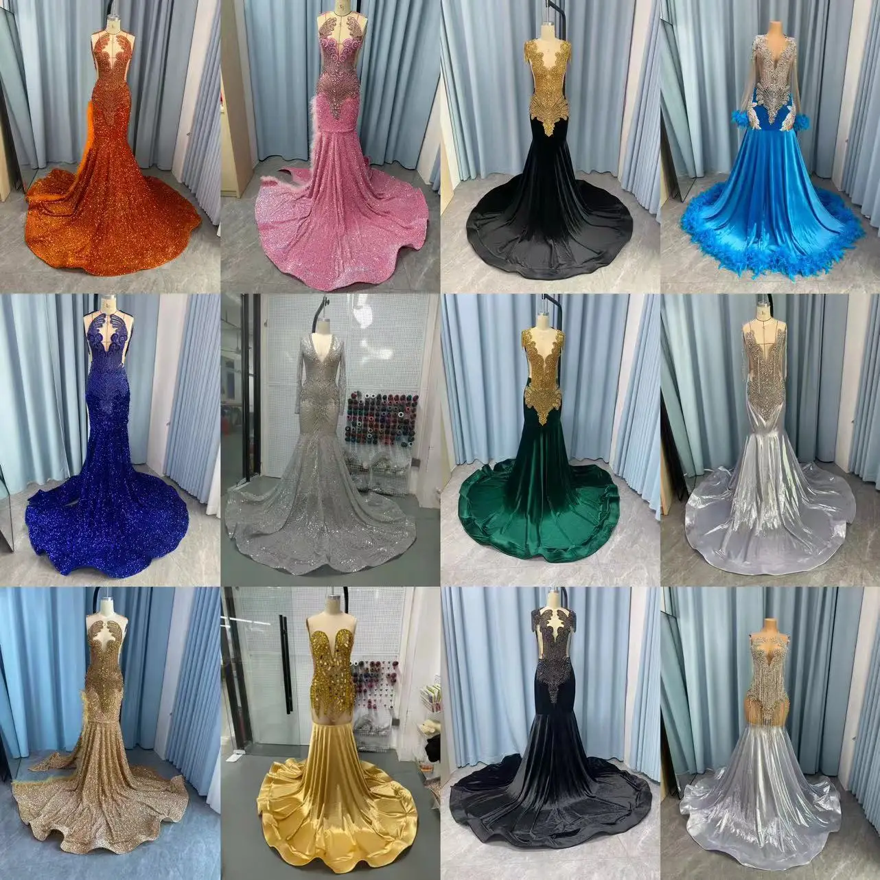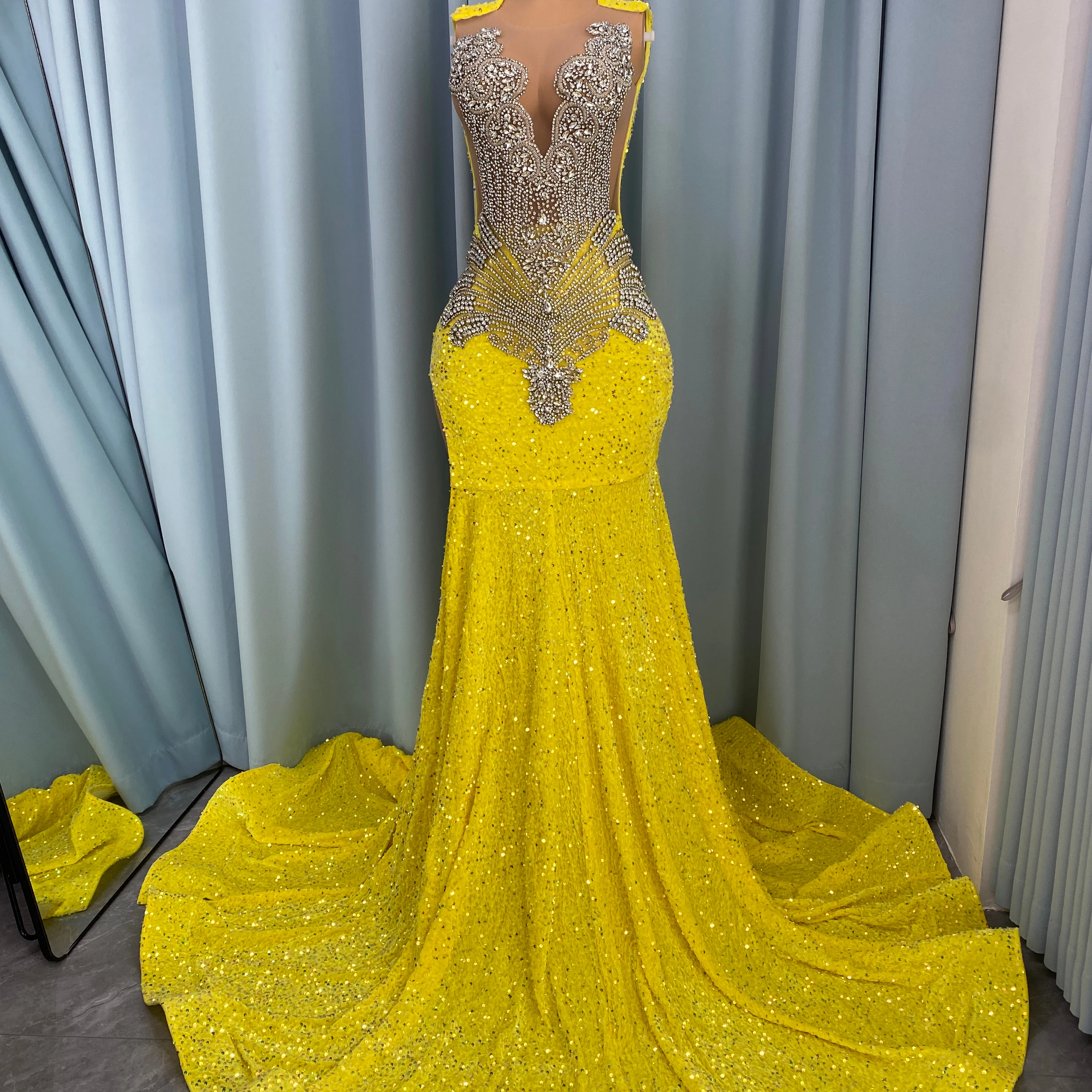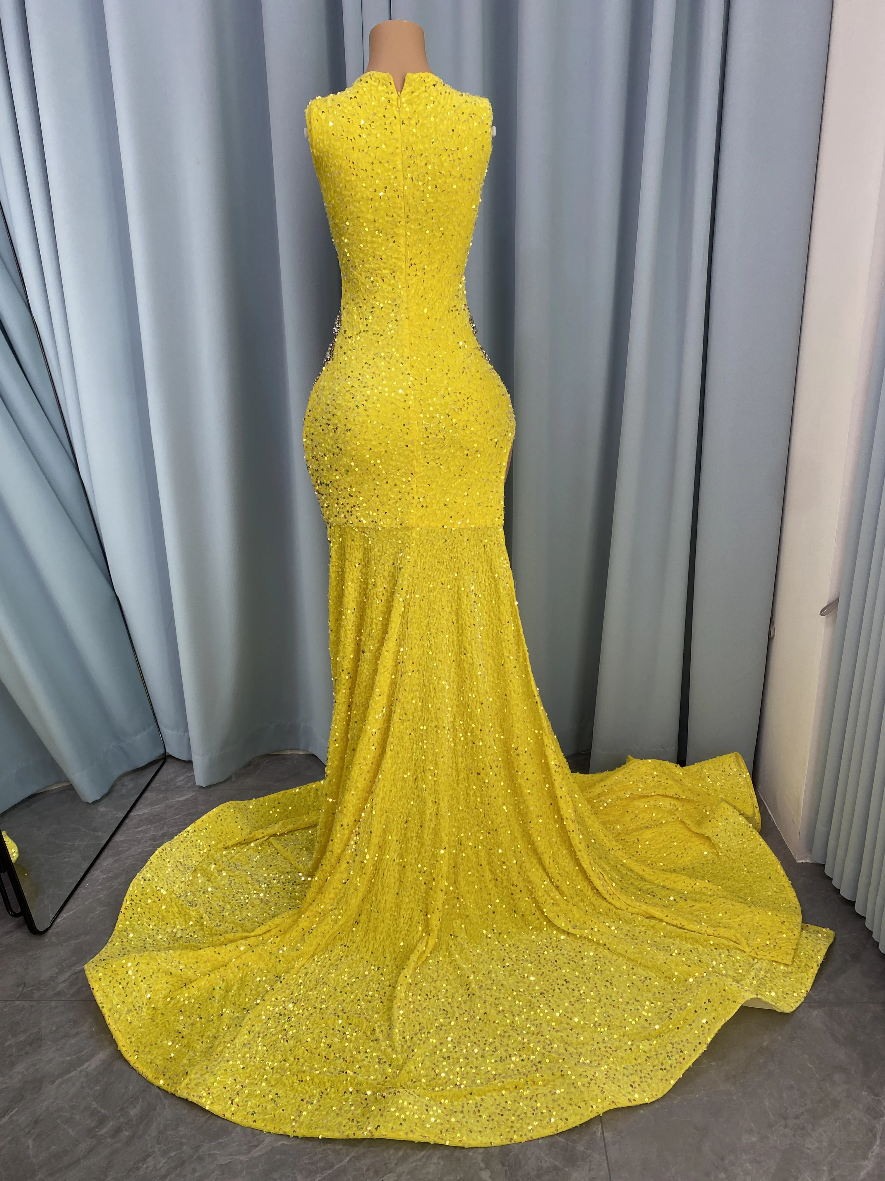 ZYHT 73907 Custom Design Long Sleeve High Neck Fashion Pleated Crystal Beads Ruched Knot High Slit Sexy Luxury Evening Dress