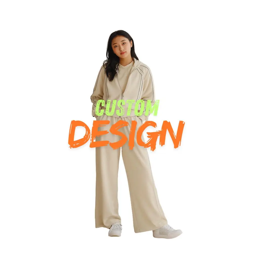 Customizable Women's Zip-Front Tracksuit Set - Fashion Casual Hooded Sweatshirt & Sweatpants Combo for Street Style