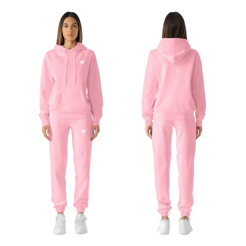 Customizable Women's Hoodie and Sweatpants Set - Solid Color Cozy Outfit with Logo Printing for Loungewear & Daily Activities