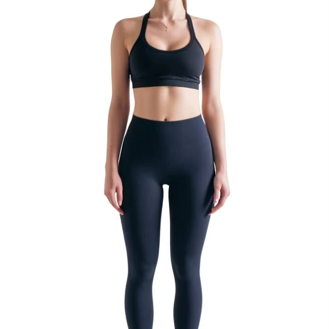 Women's Cross-Back Workout Set | High-Impact Support Bra & Compression Leggings | Quick-Dry Gym Activewear OEM