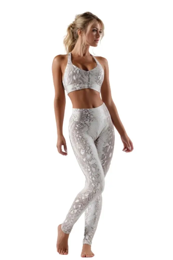 Custom Snakeskin Print Fitness Yoga Set | High Waist Seamless Leggings & Sports Bra | OEM Activewear