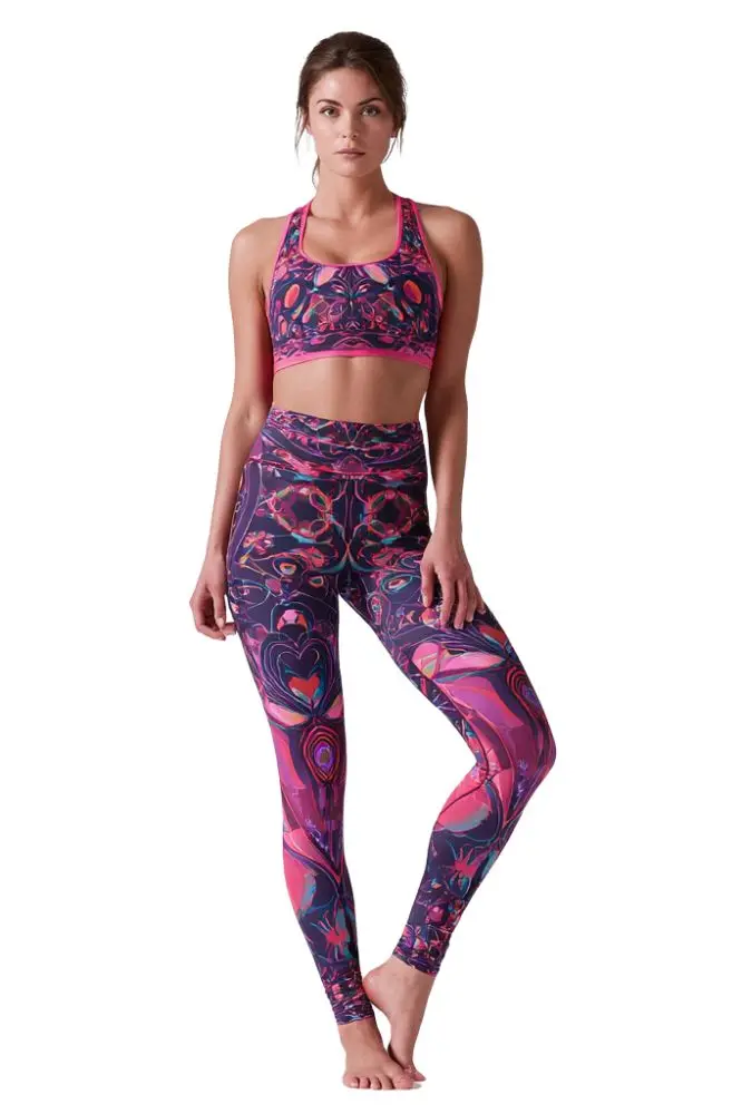 Women's Custom Full Sublimation Red Fire Print Yoga Bra & Leggings 2-Piece Set for Workout, Gym, Yoga