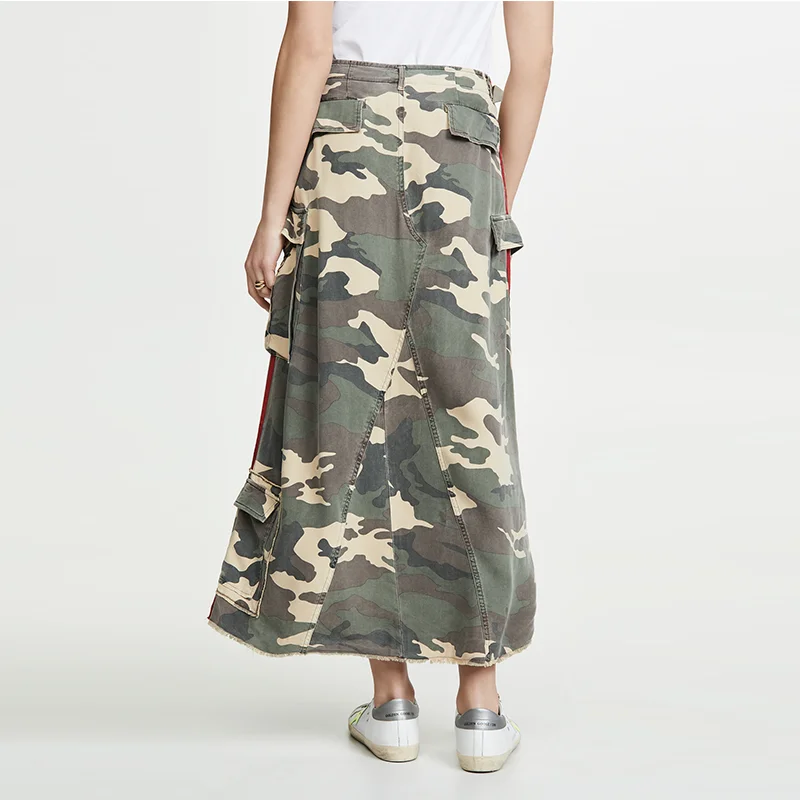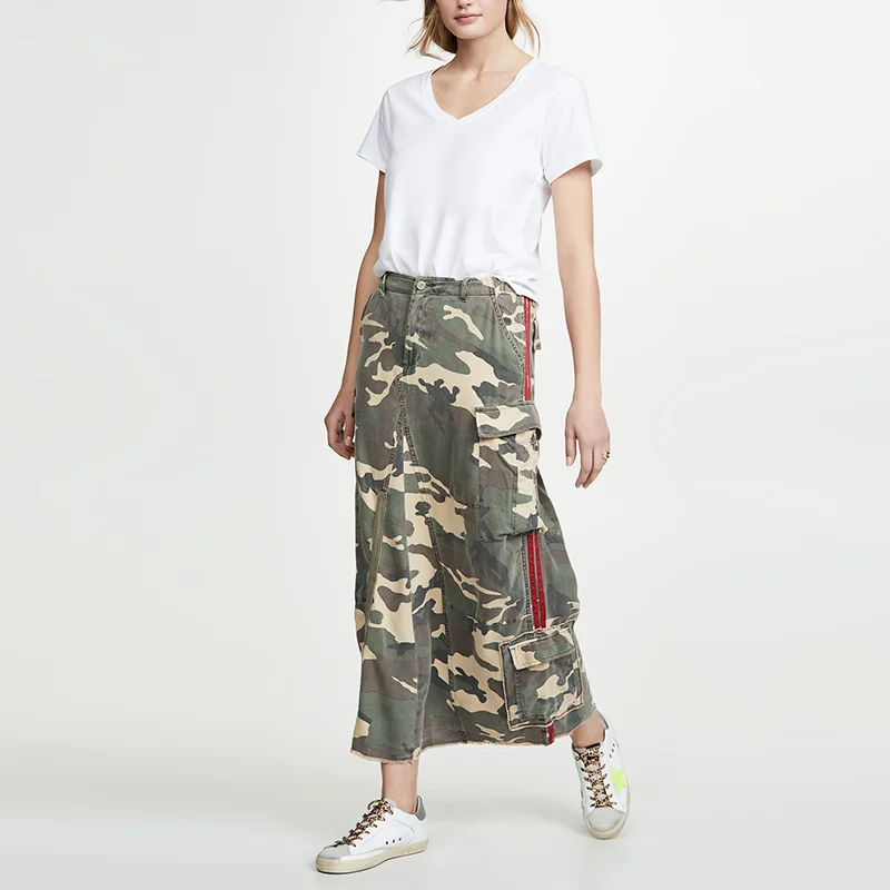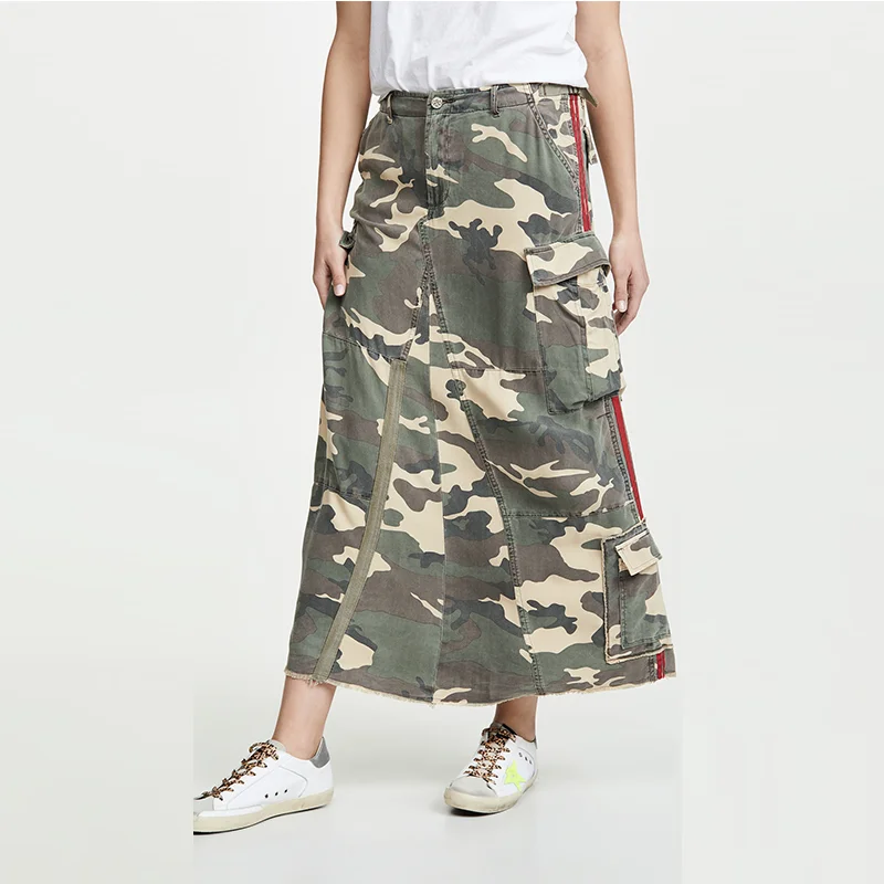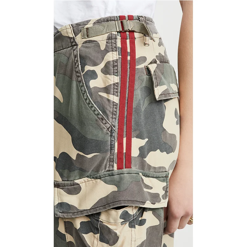 Hot Sale Custom Style Camouflage Print Side Pockets Herringbone Tape a Line Casual Skirt Ladies OEM ODM Comfort Street Casual