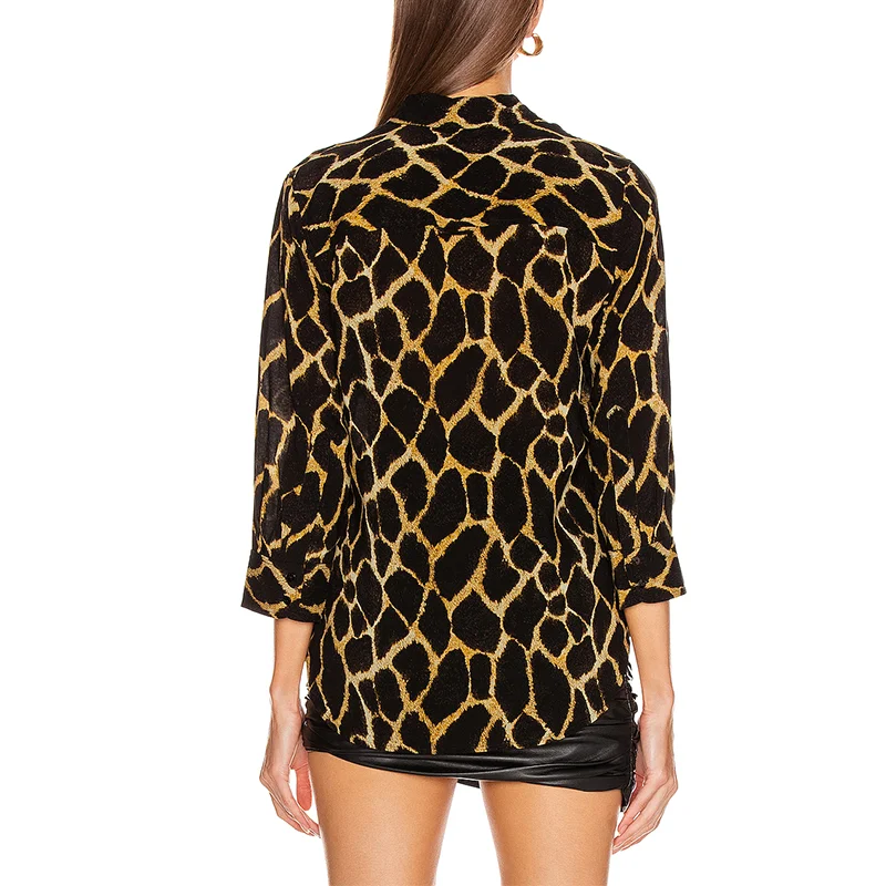 New Fashion Elegant Sexy Leopard Prints V Neck Long Sleeve Top Party Shirt Women