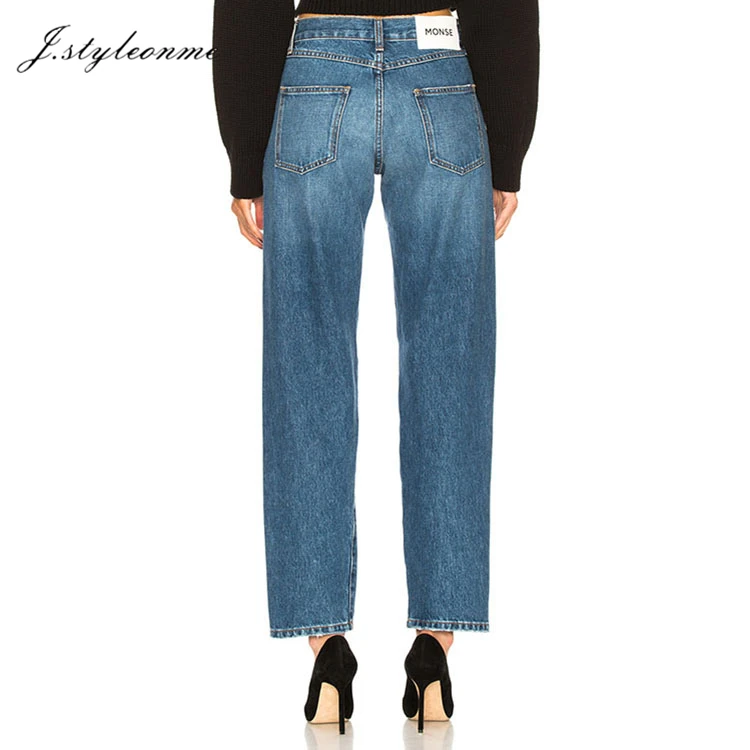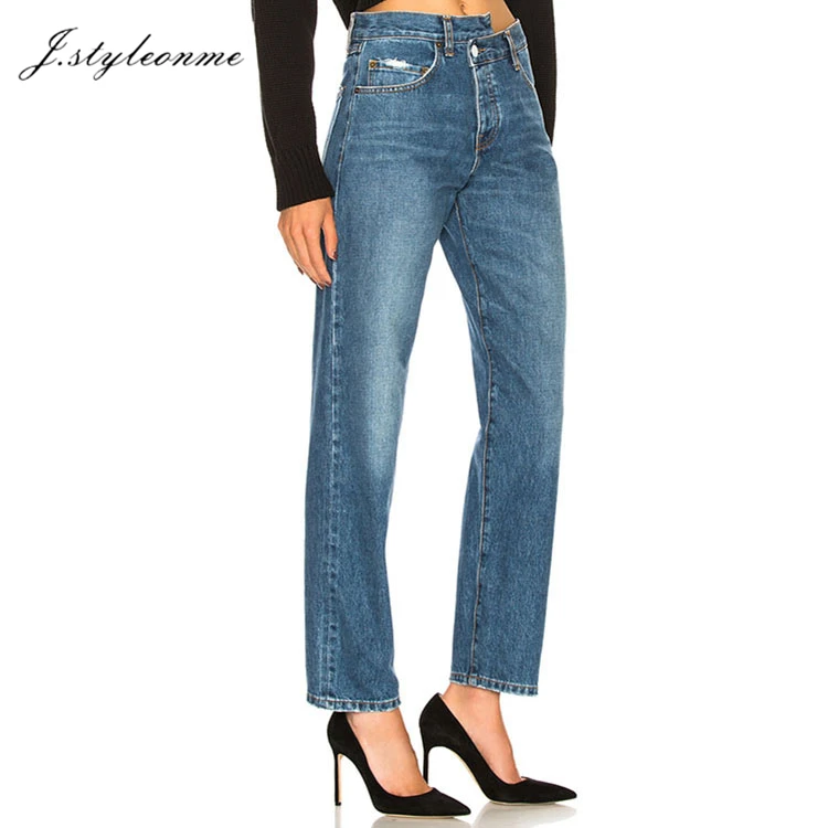 Fashion High Waist Straight Jeans Women's Denim Pants Cotton Loose Casual Style Street Wear