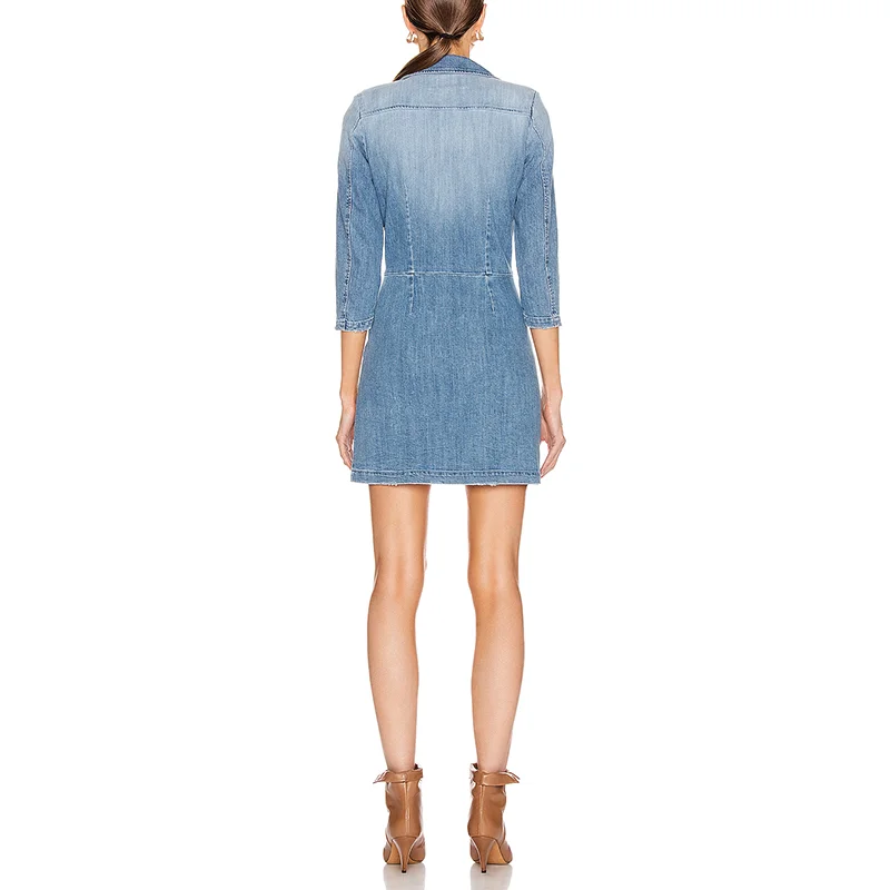 New Fashion Blue Denim Wash 3/4 Long Sleeve Ruffled Causal Bodycon Blazer Dress Women