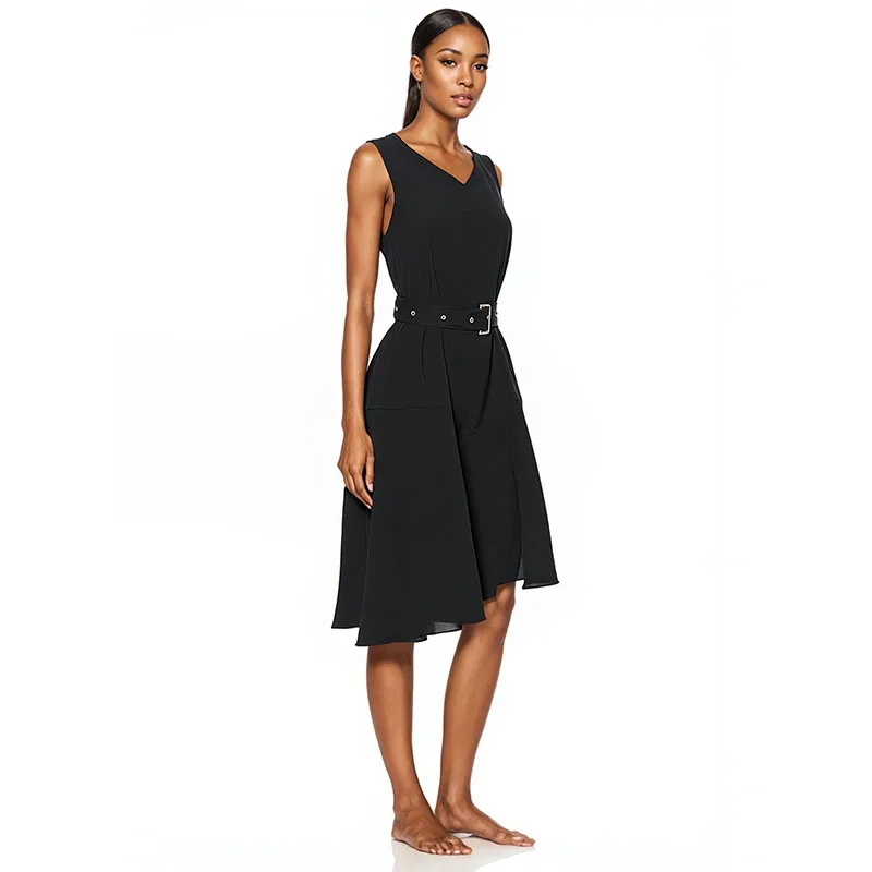 V-neck Belt Irregular Simple Temperament Women's Dress Customization