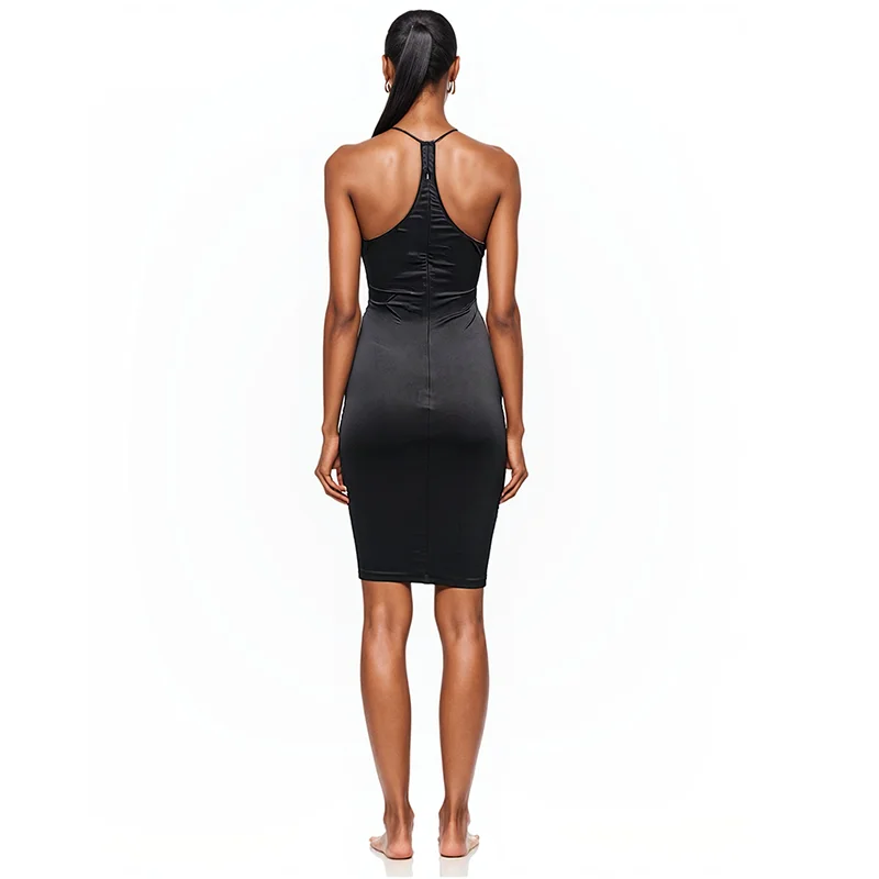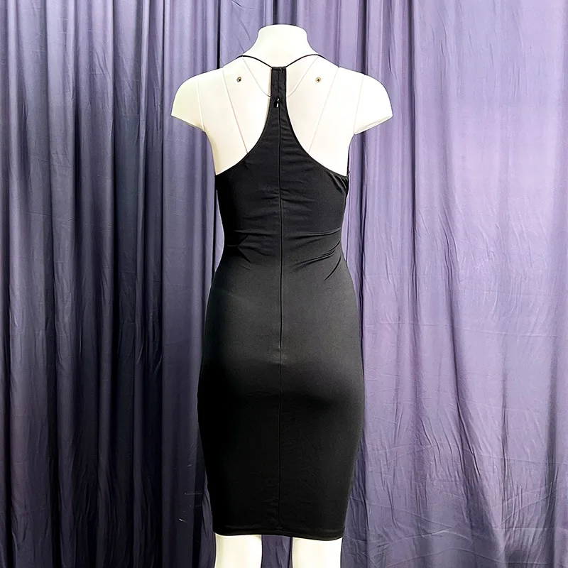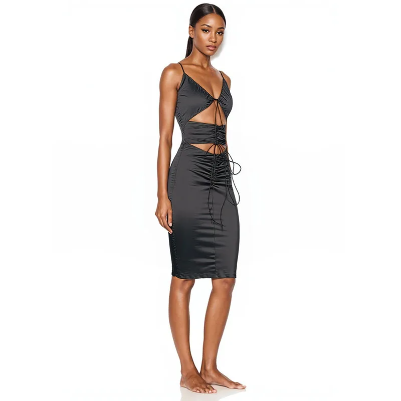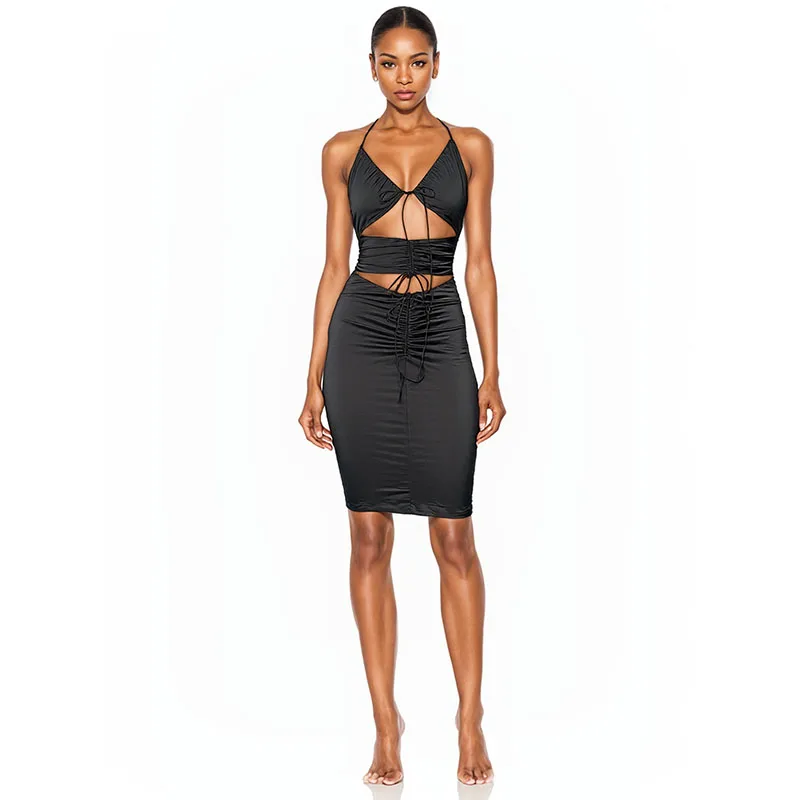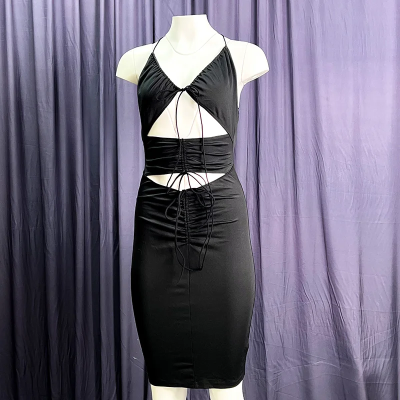 Sexy Babes Skinny Pleated Hip Hollow Sling Dress for Women
