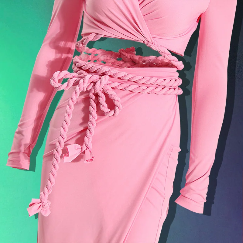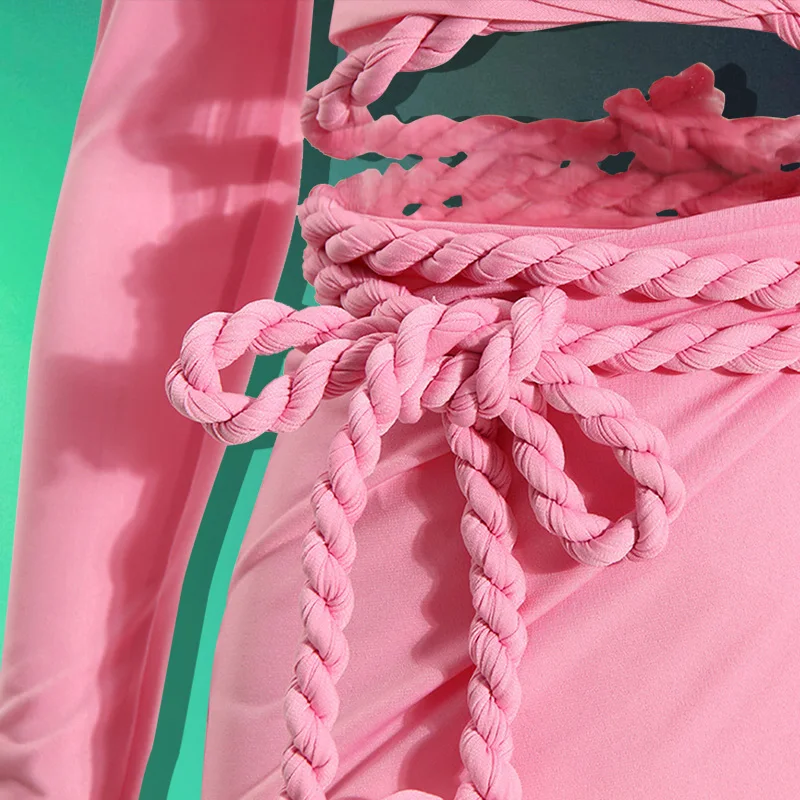 ZYHT 73907 Custom Design Long Sleeve High Neck Fashion Pleated Crystal Beads Ruched Knot High Slit Sexy Luxury Evening Dress