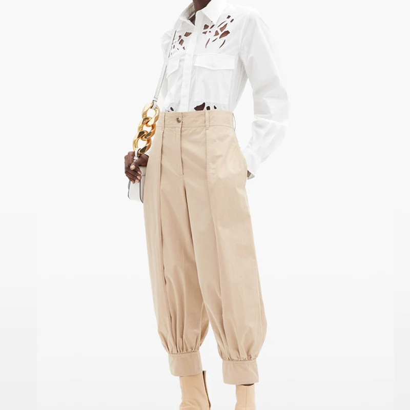 Pleated Radish Pocket Large Size Button Spring and Summer New Shopping Pants Women