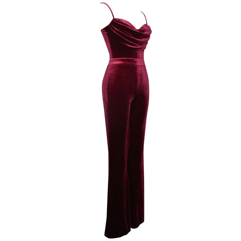 Velvet Ruffled Oversize Halter with Flared Legs Spring and Autumn Date Jumpsuit Women