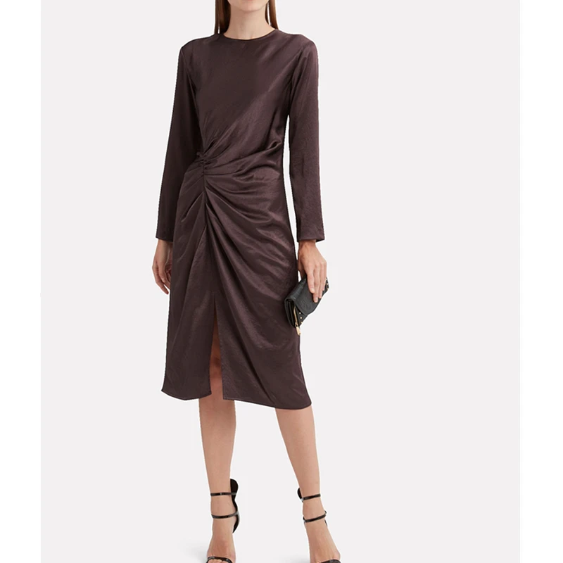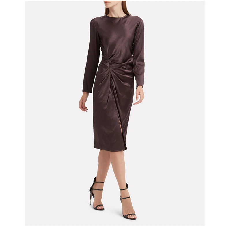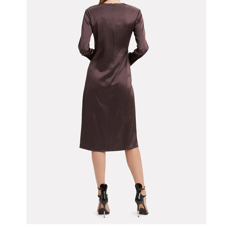 Slim Cheap Maxi Long Sleeve Satin Dress Knee Length Dresses