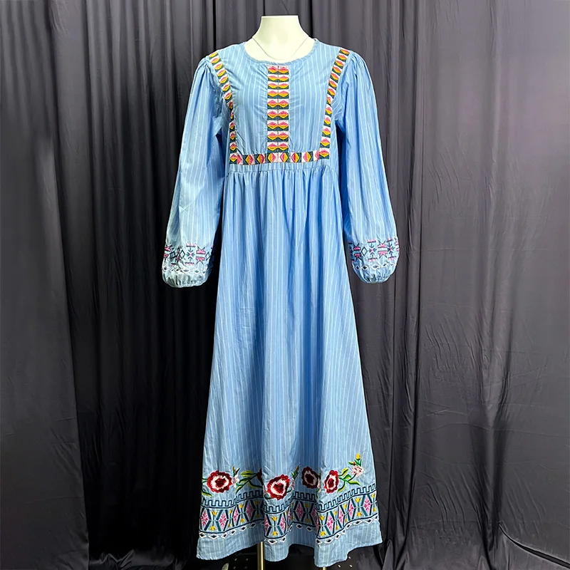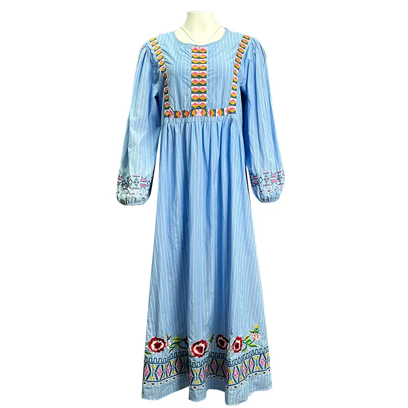 Vacation Beach Sunscreen Long Dress Female Bohemian Ethnic Style Retro Embroidery Dress