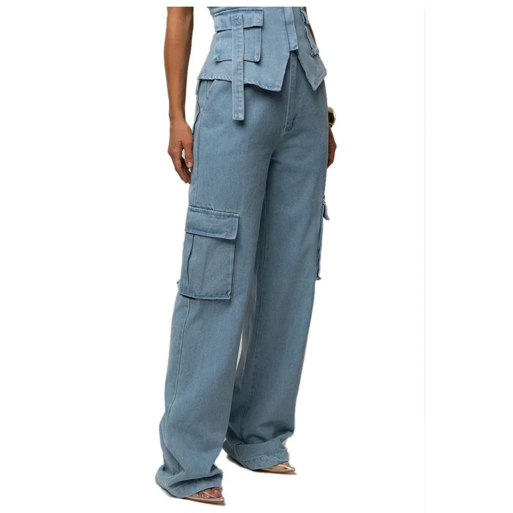 High Quality Women's Straight Leg Denim Jeans Casual Wide Leg Pants Flat Front Design Loose Fit Cargo ODM Service Available