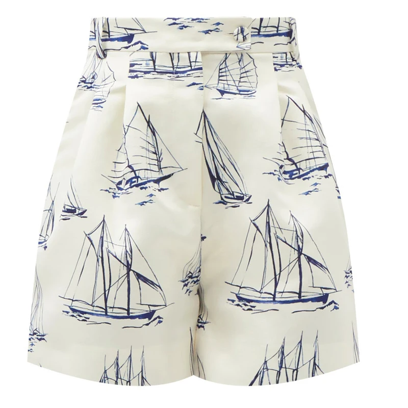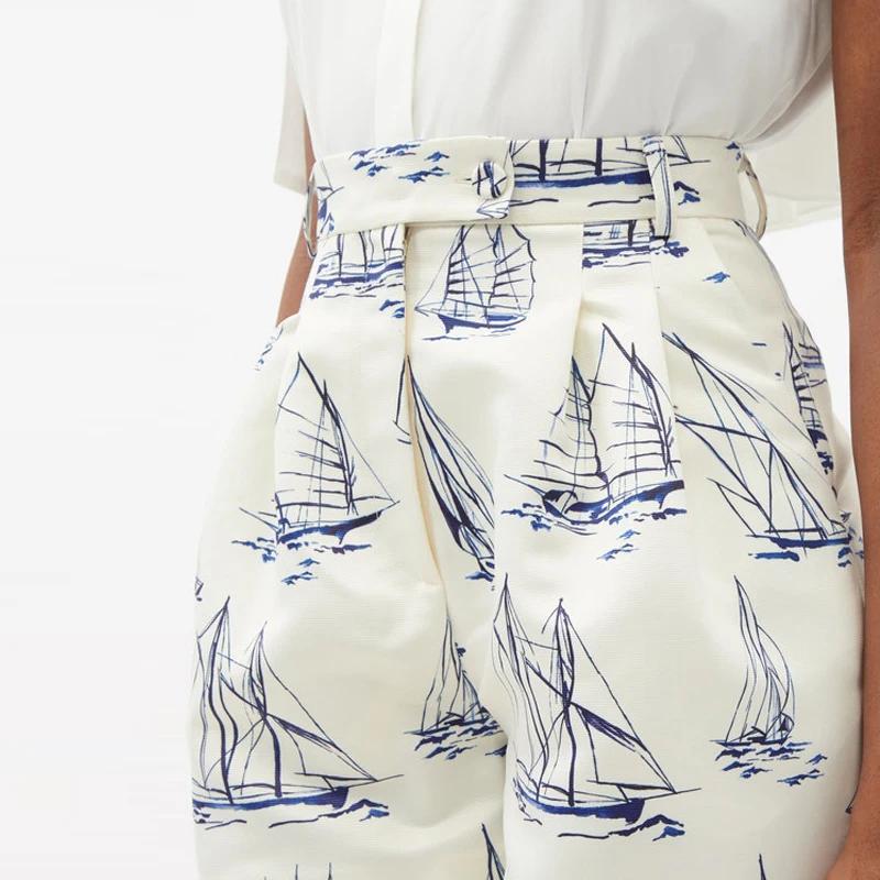 Sail Pattern High-waisted Button Plus-size Autumn and Summer New Shopping Casual Hot Shorts Female