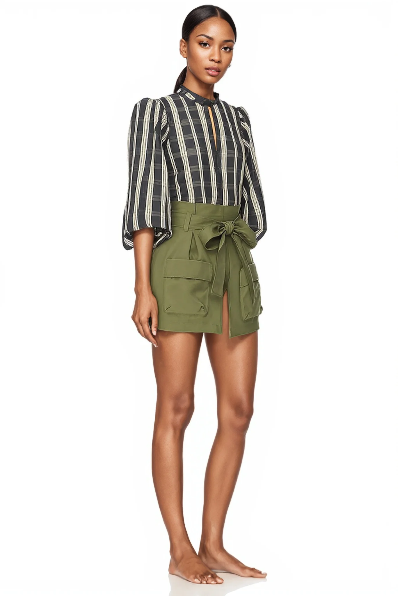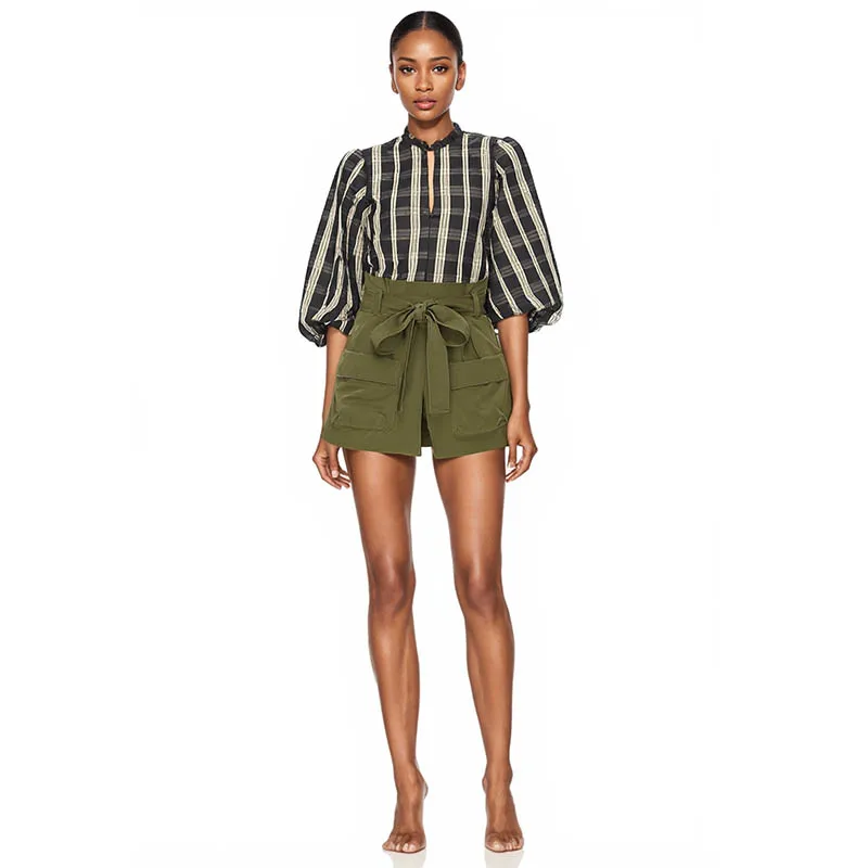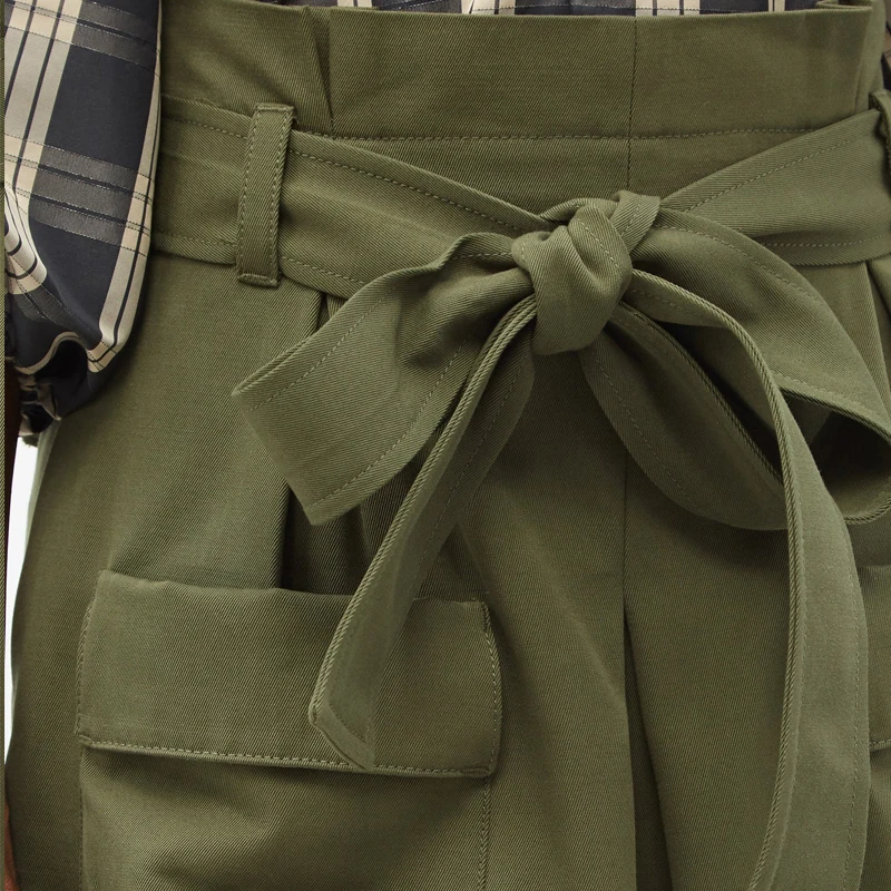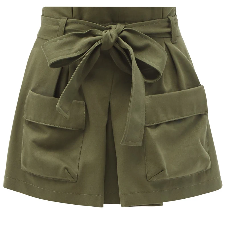 Bow Belt Big Pocket High Waist Plus-size Autumn and Summer New Shopping Casual Hot Shorts Female