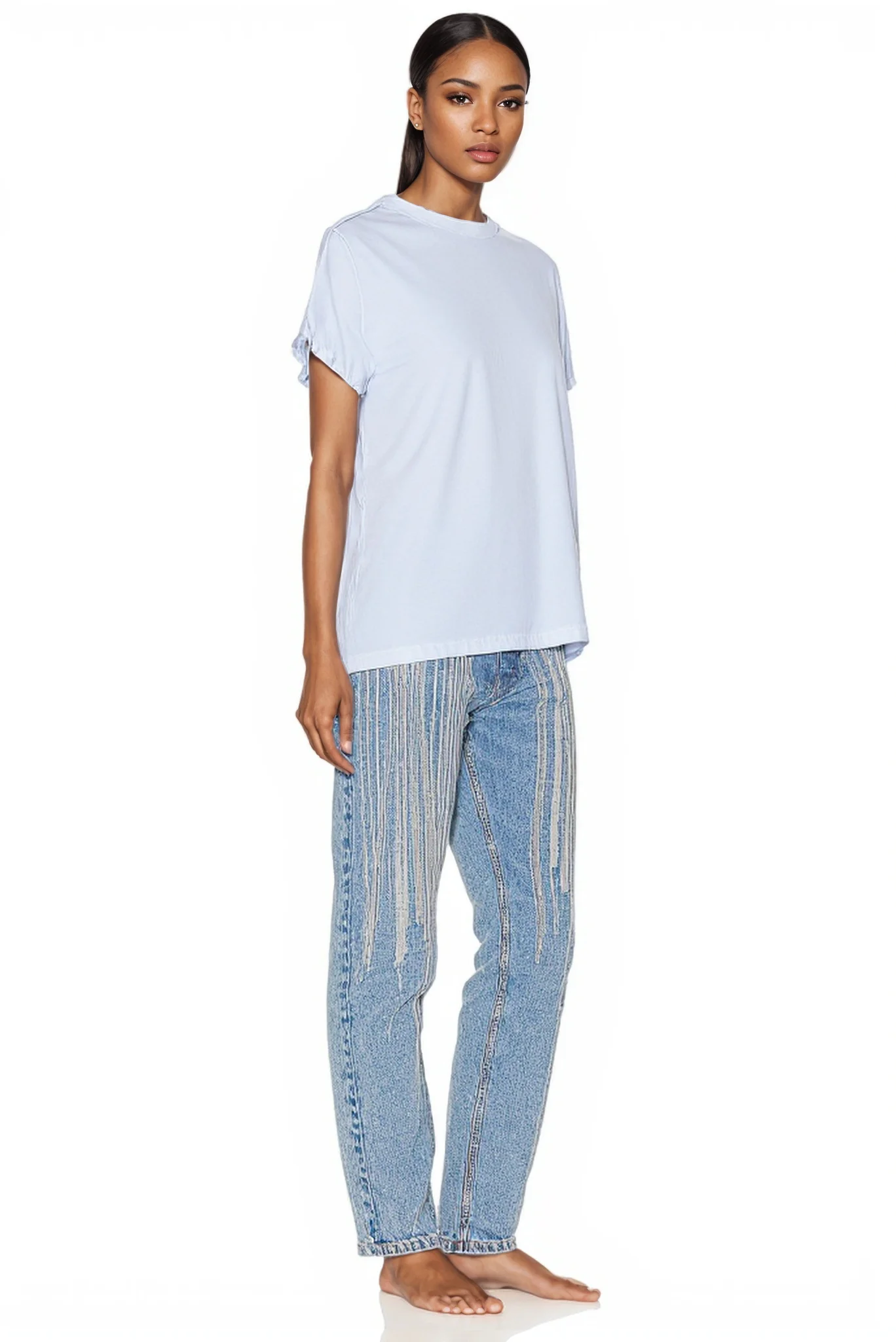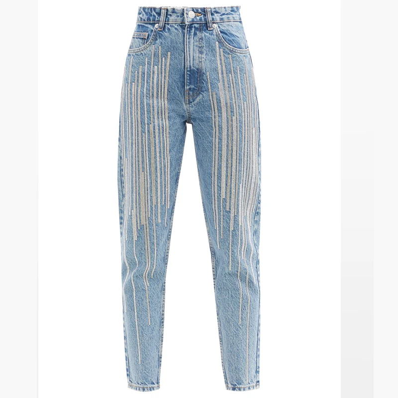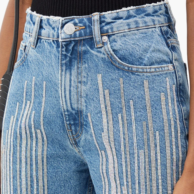 Spring and Summer New Shopping Sequins Stripes Design Light-colored Jeans Women