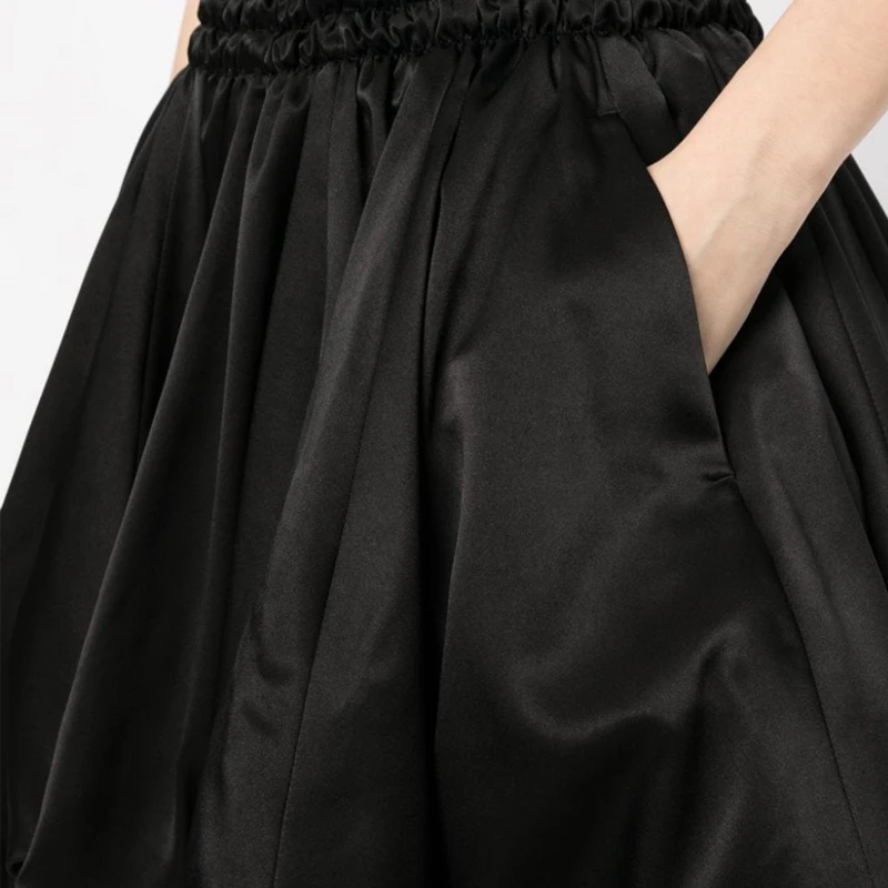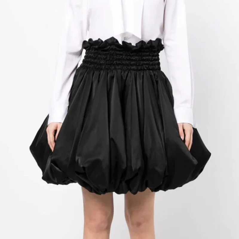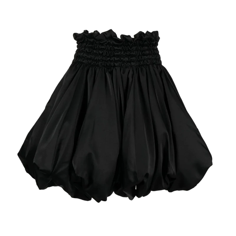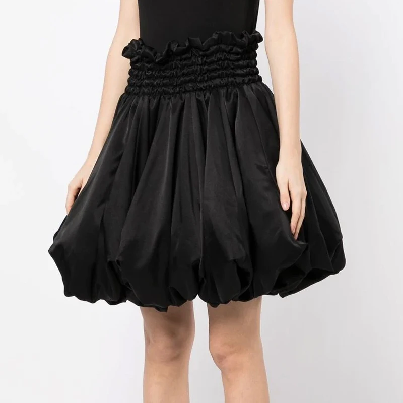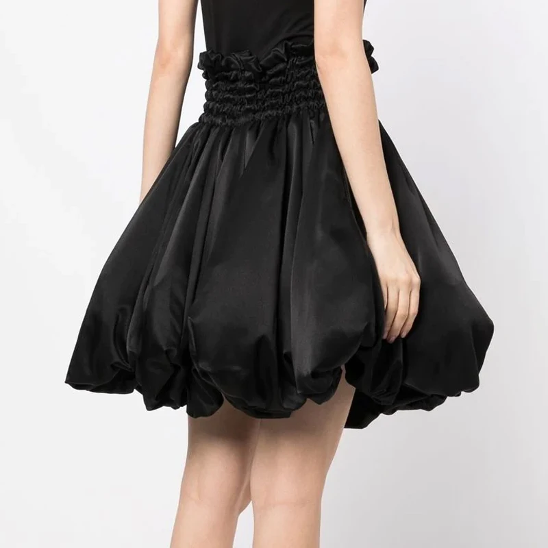 Women's High Waist Elasticated Waist Polyester Satin Shirred Puffball Balloon Skirt
