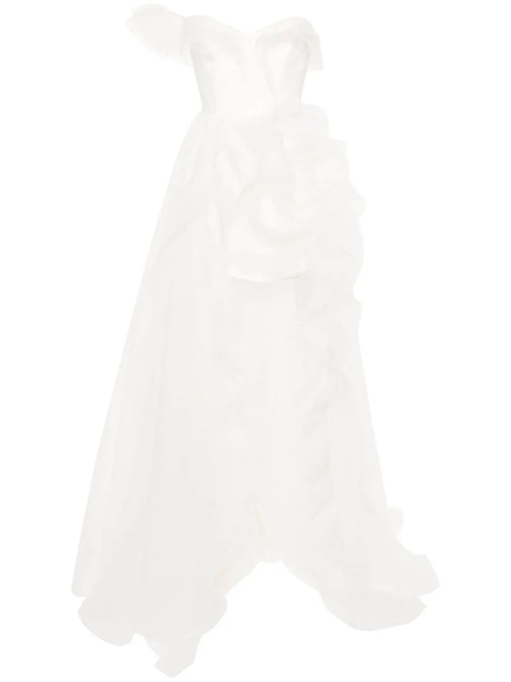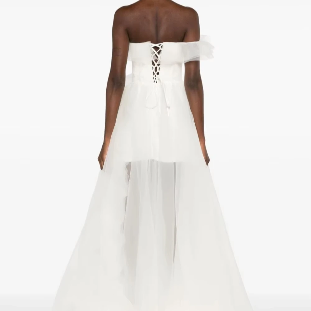 Ladies Straplessdress Ruffled Asymmetric Hem Women Party Rose White Dress