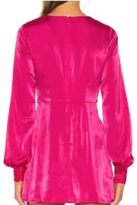 Ladies Casual Dress Lantern Sleeve Belt Solid Color Women Mini Daily Dress