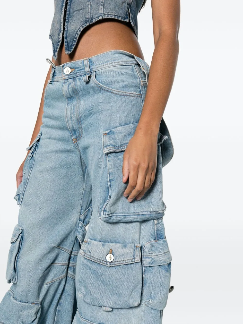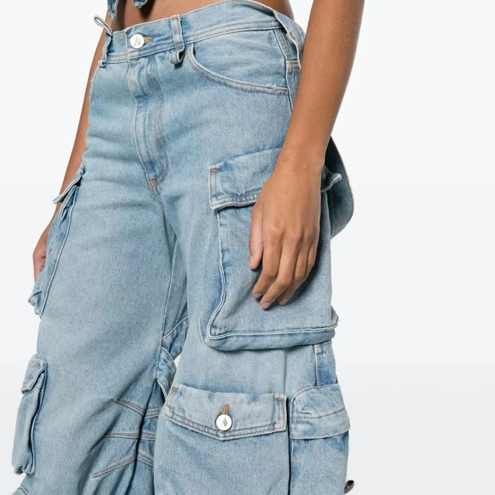 Custom Ladies Denim Pants Multiple Colors Available Wide Legs Straight with Pockets Casual Cotton Streetwear