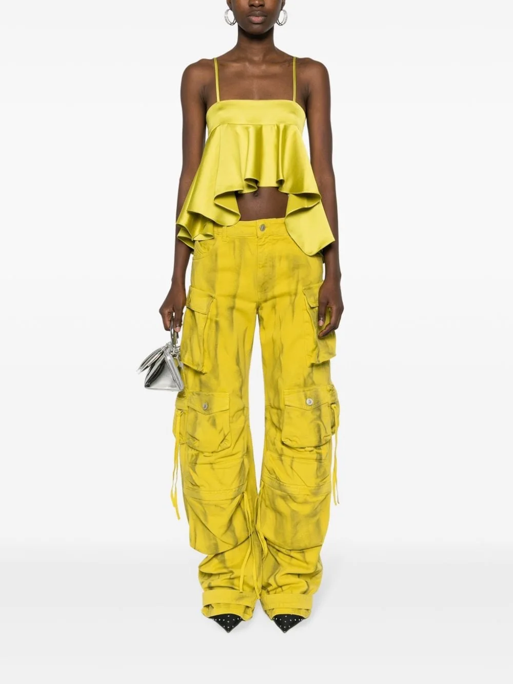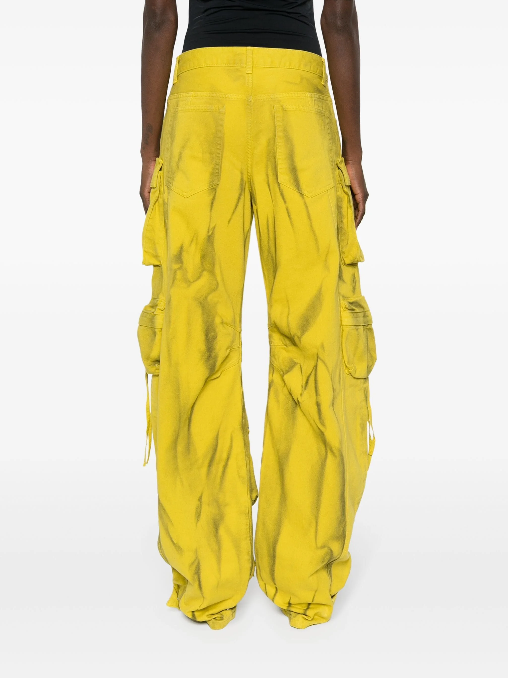 New Women's Custom Yellow Denim Pants Cargo Pants Style Button and Strings Wide Leg Straight Pants