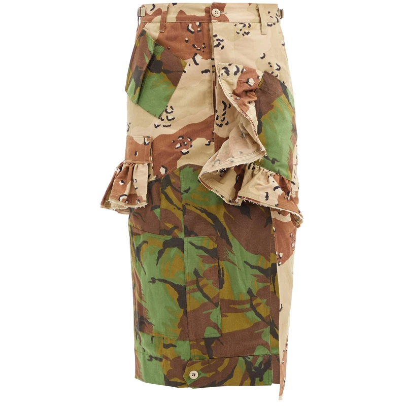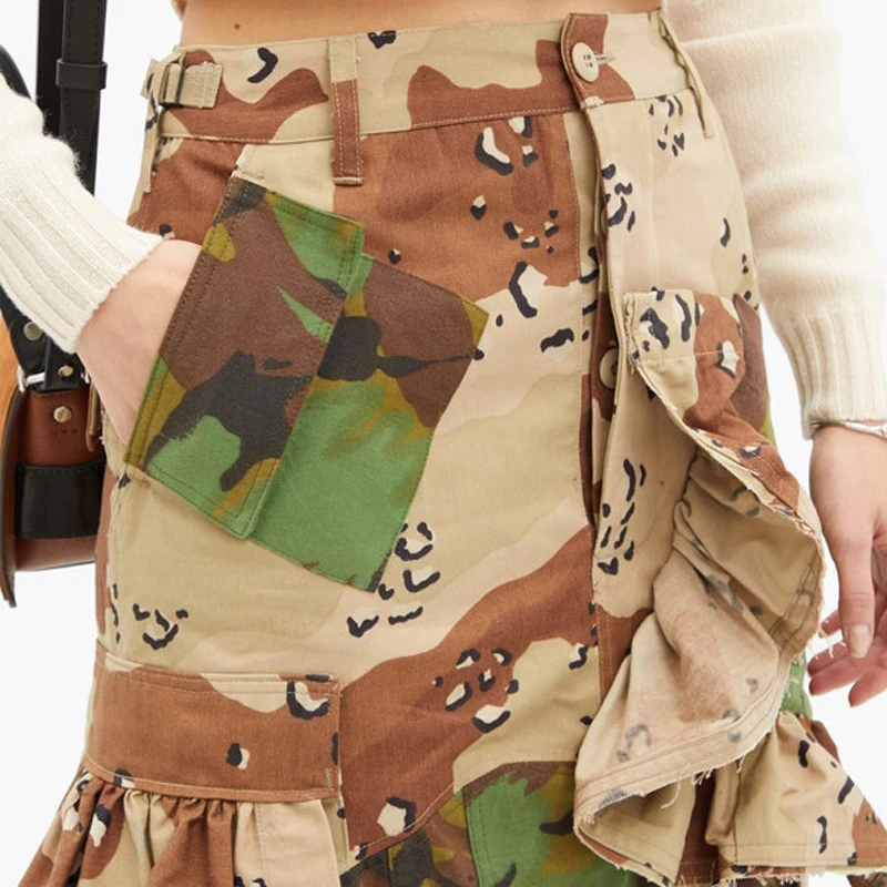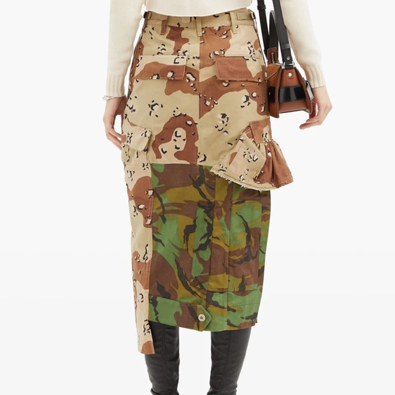 Asymmetric Button Splice Pocket Loose Large Size Spring and Autumn New Shopping Skirt Woman