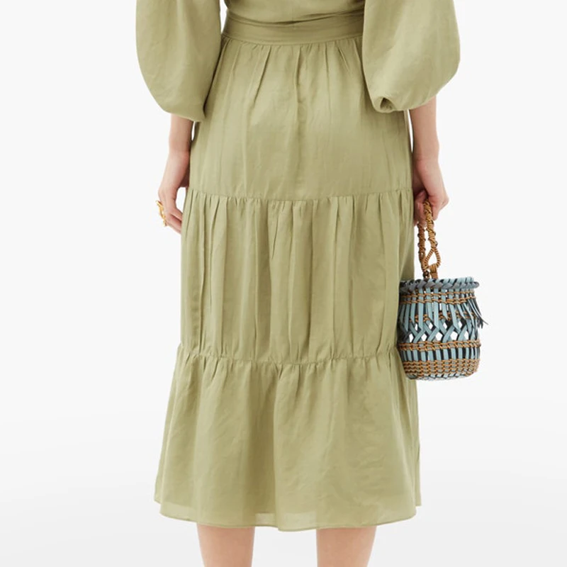Flowy Pleated Lace Invisible Zipper Spring and Autumn New Shopping Skirt Woman