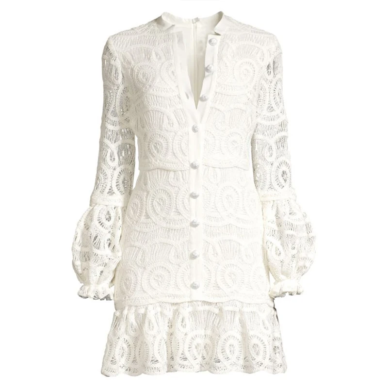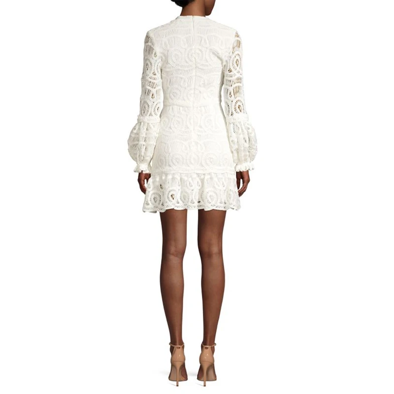 White Balloon Long Sleeve Lace Fashion Mini Dress Women Fall Casual Dresses