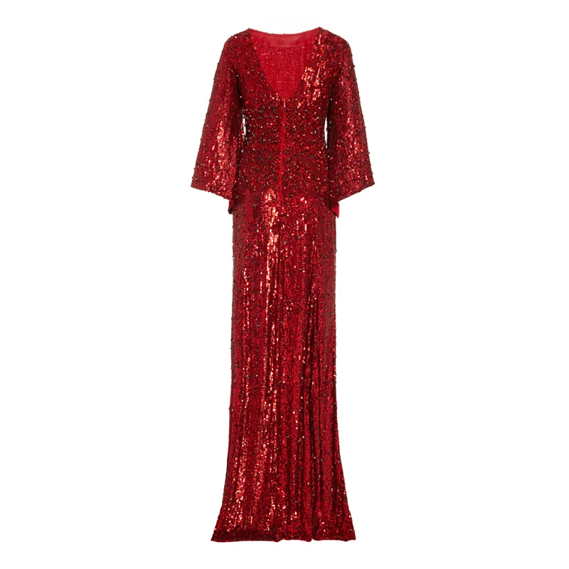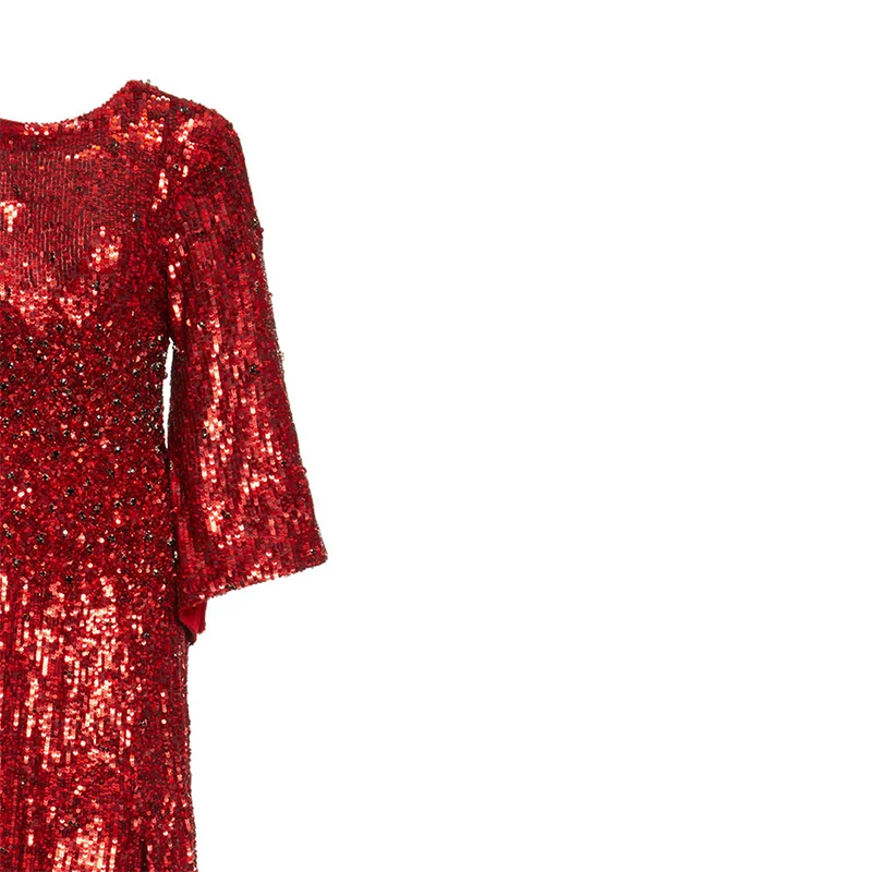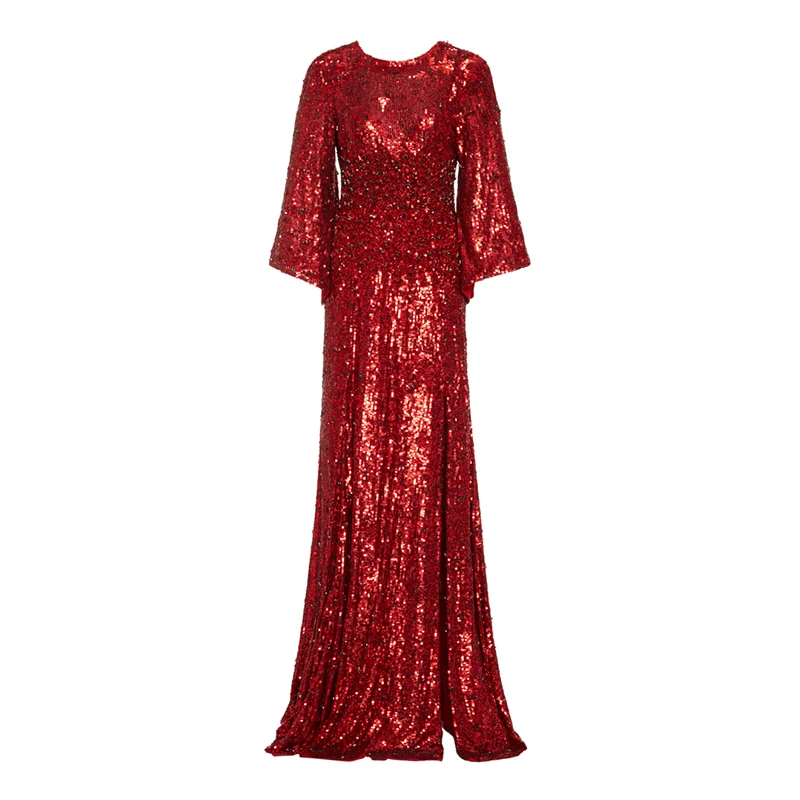 Red Women Christmas Clothing Party Embellished Sequin Slit Gown Evening Dresses
