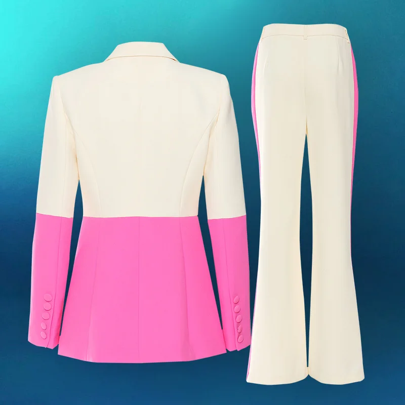 Fashion New Professional Suit One-button Color Matching Ladies Suit Flared Pants Suit Two-piece