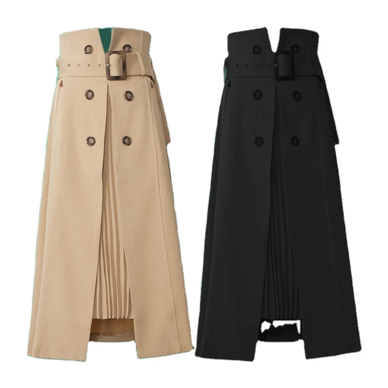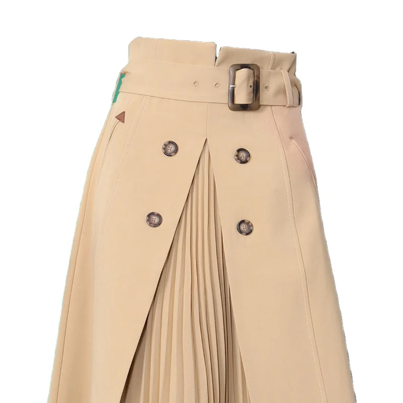 New High Waist Pleated Skirt A-line Skirt Women's Mid-length Tooling Suit Skirt