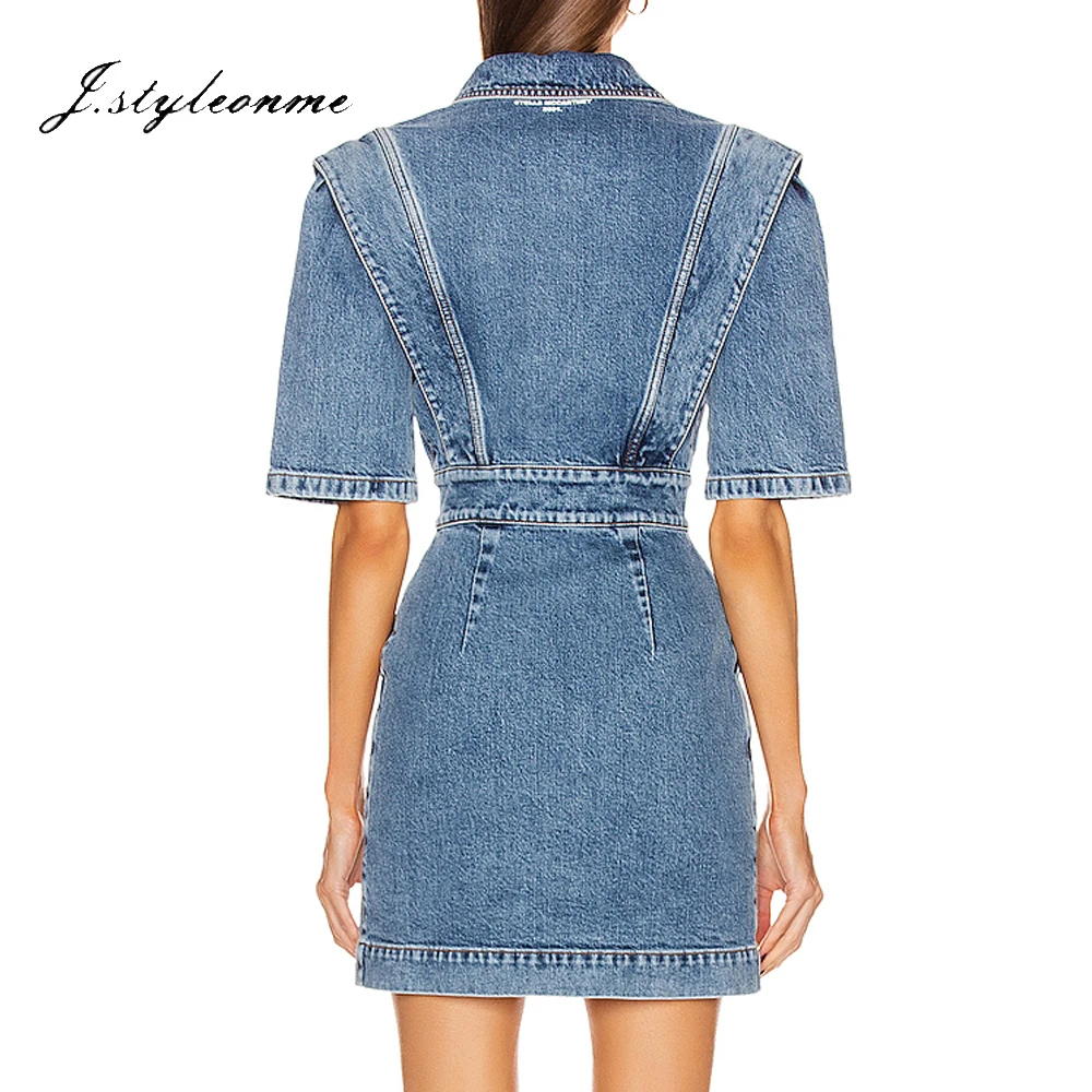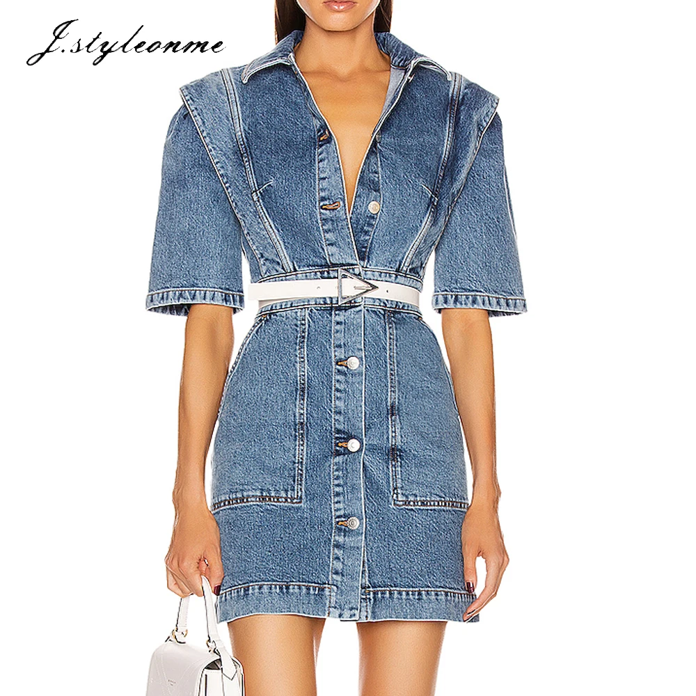 Wholesale Latest Fashion Women Denim Dress Casual Short Sleeves Button Front Closures Mini Dresses Summer